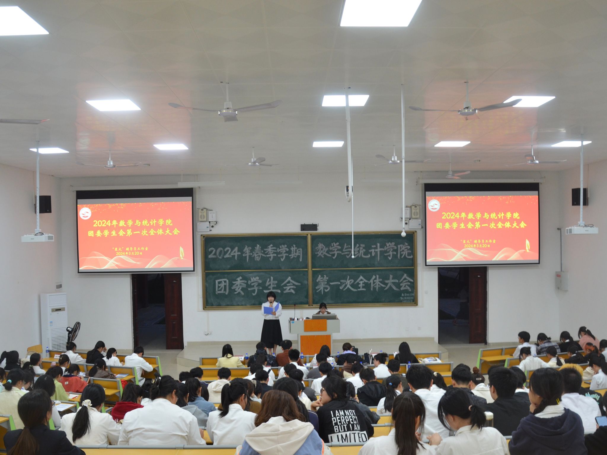 为做好本学期团委学生会各项工作,3月20日晚,数学与统计学院在实验2-A105教室举办2024年春季学期该院团委学生会第一次全体会议。该院辅导员老师、团委学生会全体成员参加会议。