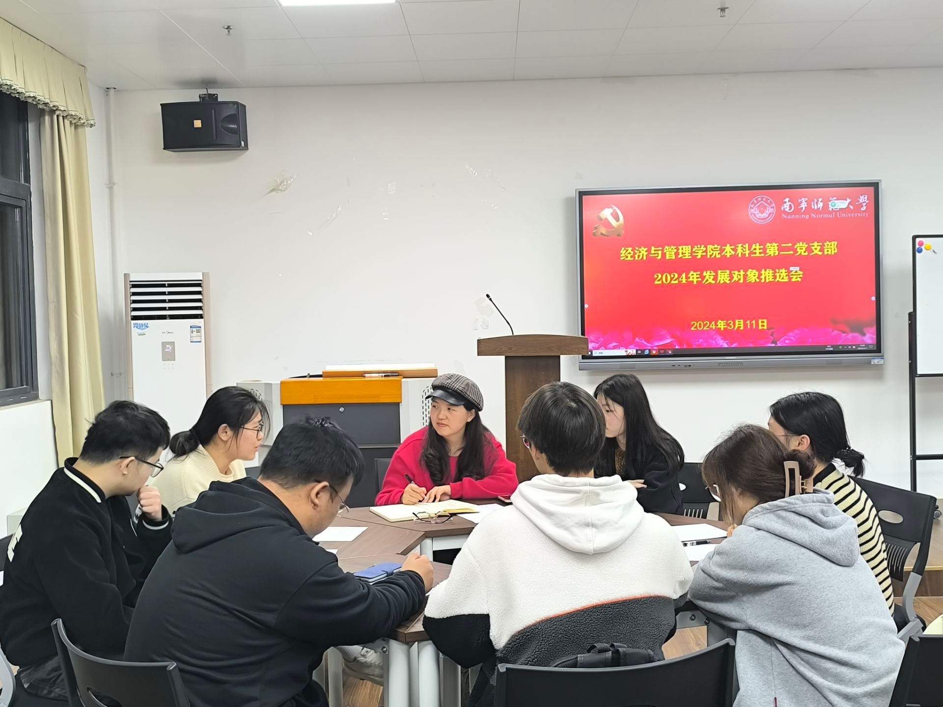 3月11日下午,经济与管理学院本科生第二党支部以线上线下相结合的方式在五合校区理综楼召开支部委员会研究确定发展对象。经济与管理学院本科生第二党支部委员,相关下班党员、助班及学生代表共13人参加会议。会议由党支部书记刘家瑶同志主持。