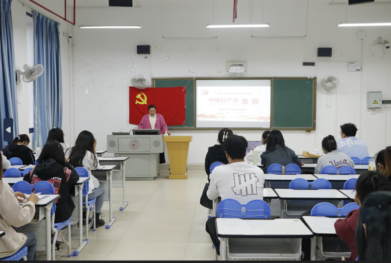 第三专题中,梁小霞老师则带领学生全方位解读《中国共产党章程》,围绕党的二十大对党章作的重要修改、党章的概述、发展历程、总纲和党章的条文五个方面展开讲解。她指出,今后成为一名合格的党员,个人的思想认识、理论知识和行为规范都要与时俱进,要把学习党章作为必修课,自觉学习党章、遵守党章、贯彻党章、维护党章,自觉加强党性修养,为党分忧为国尽责为民奉献。