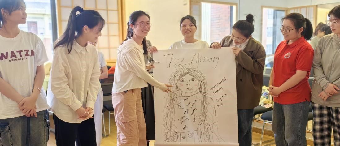 学院2021级商务英语专升本班的同学们也热情地参与了讨论。张蓝月同学说:“教育戏剧不仅能够培养语言、思维、创造力、情感和社会能力,还能够提高学习兴趣、增强学生自信心和自我价值感。”林照娟同学说:“这节课融入了广西三月三节日,带领同学们进入到'壮乡的世界',沉浸式地感受少数民族传统文化的魅力,感受民族团结的力量。”黄玉梅说:“教育戏剧融入中国传统文化,用英语讲中国故事,可以增强学生的文化素养,让学生以更直观的方式用英语向外国人讲述中国故事,增强文化自信!”本夏芳同学说:“这次课堂不仅让我体验到了游戏的乐趣,还让我收获了新的知识,这对于我们今后成为教师时很有用处,可以将这种模式运用在学生的身上,让学生在游戏中学习,获得成长!”陆晓霞同学说:“戏剧教育强调学生的参与性与创造性,学生沉浸在完整的创作过程中,不仅仅能开发学生的想象力,对学生感受力的培养,情商的培养也是很好的途径。”何海婷同学说:“本次英语教育戏剧特色课程以即将到来的三月三民族节日为载体,一方面提供了让参与者有勇气尽情冒险,感受民族活动,探索'不确定性'的情境;另一方面,提供了真实体验,让参与者切实从扮演的过程中获得触动、反观、反思。”