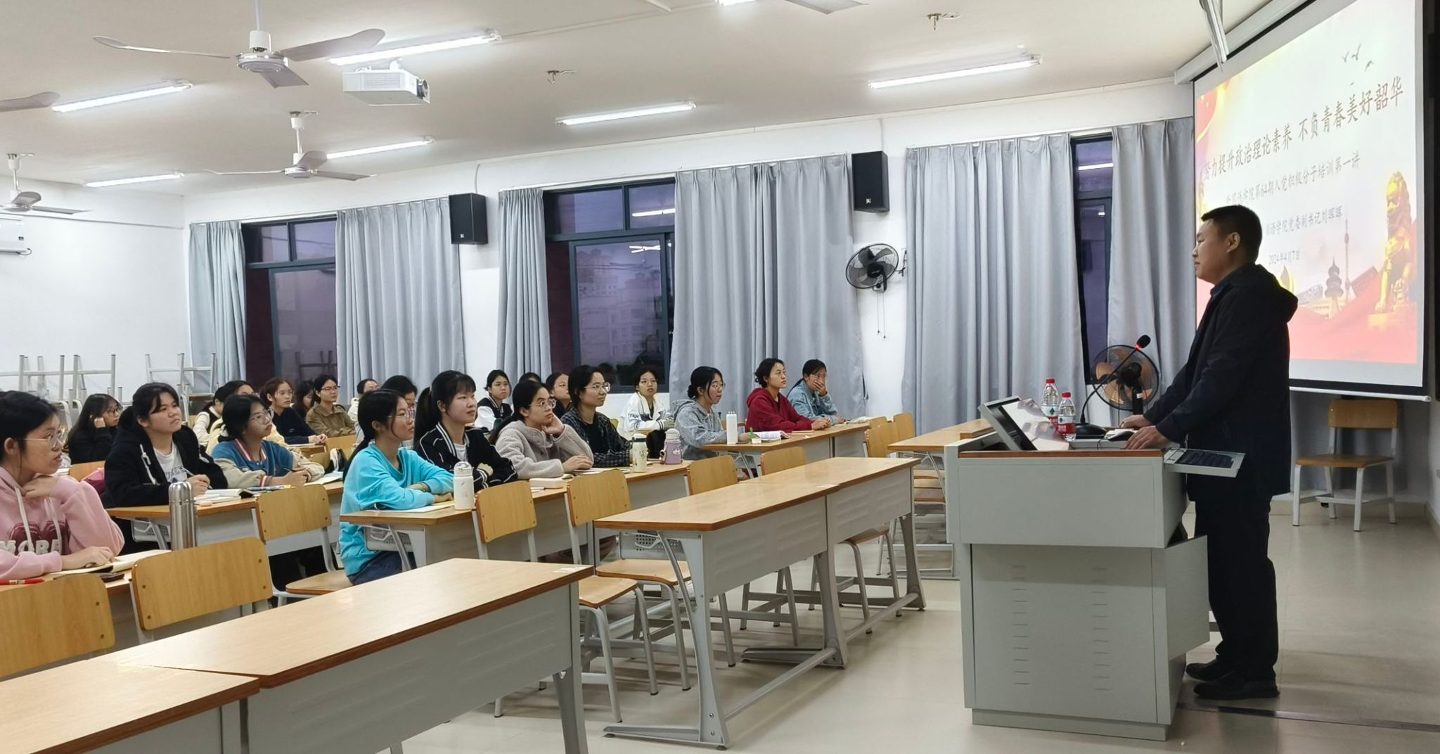 随后,刘晖晖副书记还提到“各位入党积极分子要做专业学习和团结协作的积极分子”,他希望各位入党积极分子积极参加与专业相关的各类活动和比赛,从实践中找到自己的不足,以此提高自己的专业能力。