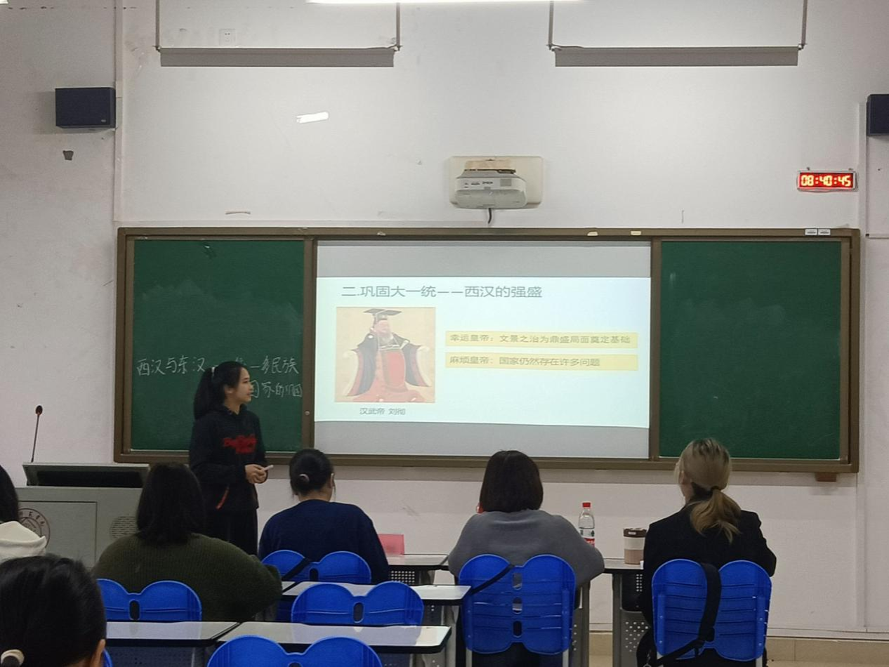 为进一步提升师范生的教育教学水平 ,提高师范生人才培养质量,做好选拔优秀师范生参加2024年春季学期全校和全区师范生教学技能大赛的工作,法学与社会学院于2024年3月17日在五合校区文楼303、304、305、312、313、314等六个教室同步进行举办第十五届师范生教学技能大赛初赛。本次比赛由2021级历史班主办,历史文化协会协助承办,活动对象为全日制在校师范生。