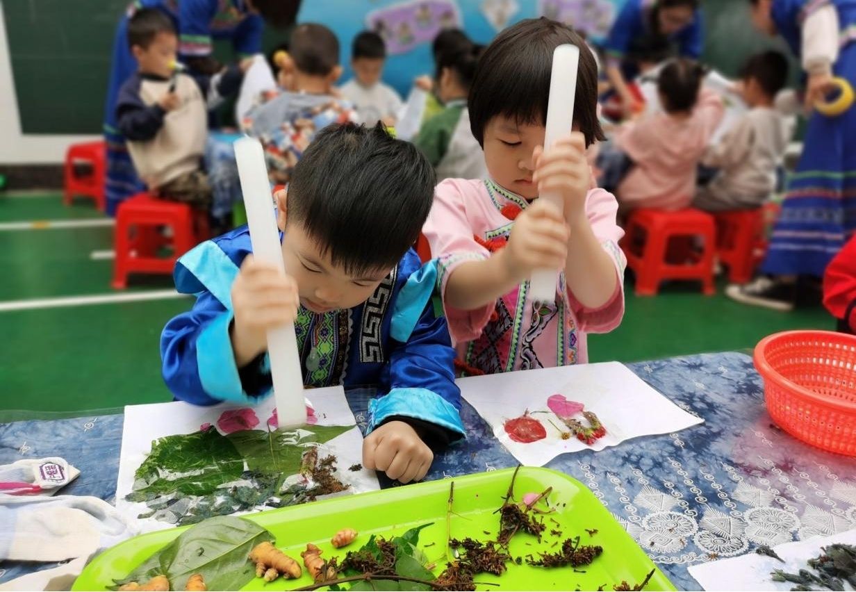 4月9日,附属幼儿园开展了一场与植物染料有关的艺术创作活动。三月三,壮乡人民除了欢歌载舞,还有令人垂涎的美食——五色糯米饭,这是壮乡人民用植物和糯米制作出来的美食。枫叶、密蒙花、紫蓝草、红蓝草、蝶豆花,幼儿园里的小朋友们用这奇妙的植物碰撞出了不一样的火花,通过扎染、印染、喷绘等形式,体验传统工艺,感受非遗的魅力,尽情发挥了孩子们的想象力、审美力和创造力!