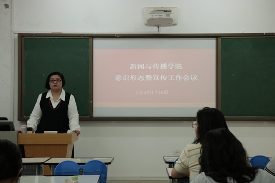 4月16日下午16时,新闻与传播学院于文综楼413教室召开意识形态暨新闻宣传工作会议,党委书记聂卉、学工办辅导员李虹霏、各班宣传委员及相关部门宣传骨干参加会议。
