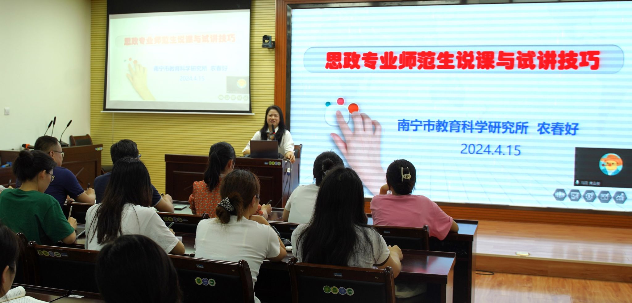为进一步提升思想政治教育专业师范生的说课与试讲能力,马克思主义学院于4月15日特邀南宁市教育科学研究所农春好老师通过线上线下相结合的方式,为全院学生带来了一场主题为“思政专业师范生说课与试讲技巧”的专题讲座。此次讲座作为学院思想政治教育专业师范生能力提升系列讲座的第十一讲,由副院长王卫国主持。