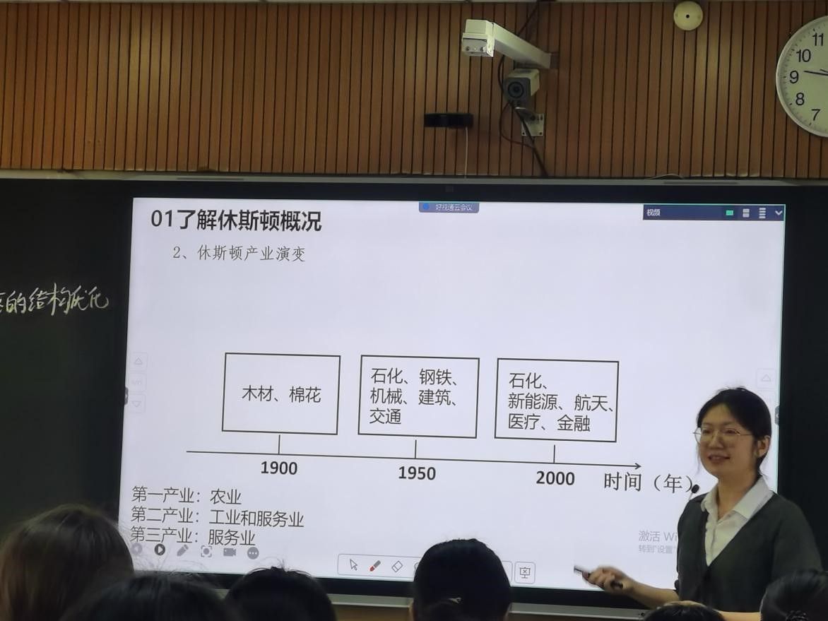 图4:江苏省泰兴市第一高级中学朱筱筠老师在上《产业转型地区的结构优化——以美国休斯顿为例》