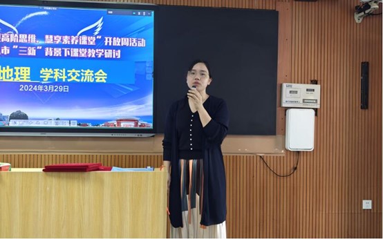 主题分享环节,多名教师围绕不同主题开展其课程教学。莫钟慧、朱筱筠、周君等三位老师以《产业转型地区的结构优化》为主题分别进行同课异构课程教学,徐冰琳老师以《高阶思维慧享素养“三新”背景下指向地理学科核心素养的“五有五化”课堂教学》的微专题报告。四位教师的内容分享为在座观摩学生展示同一教材内容不同的教学方式,并引导思考认识到不同的教学策略所产生的教学效果,进一步开阔了地理教学思路。