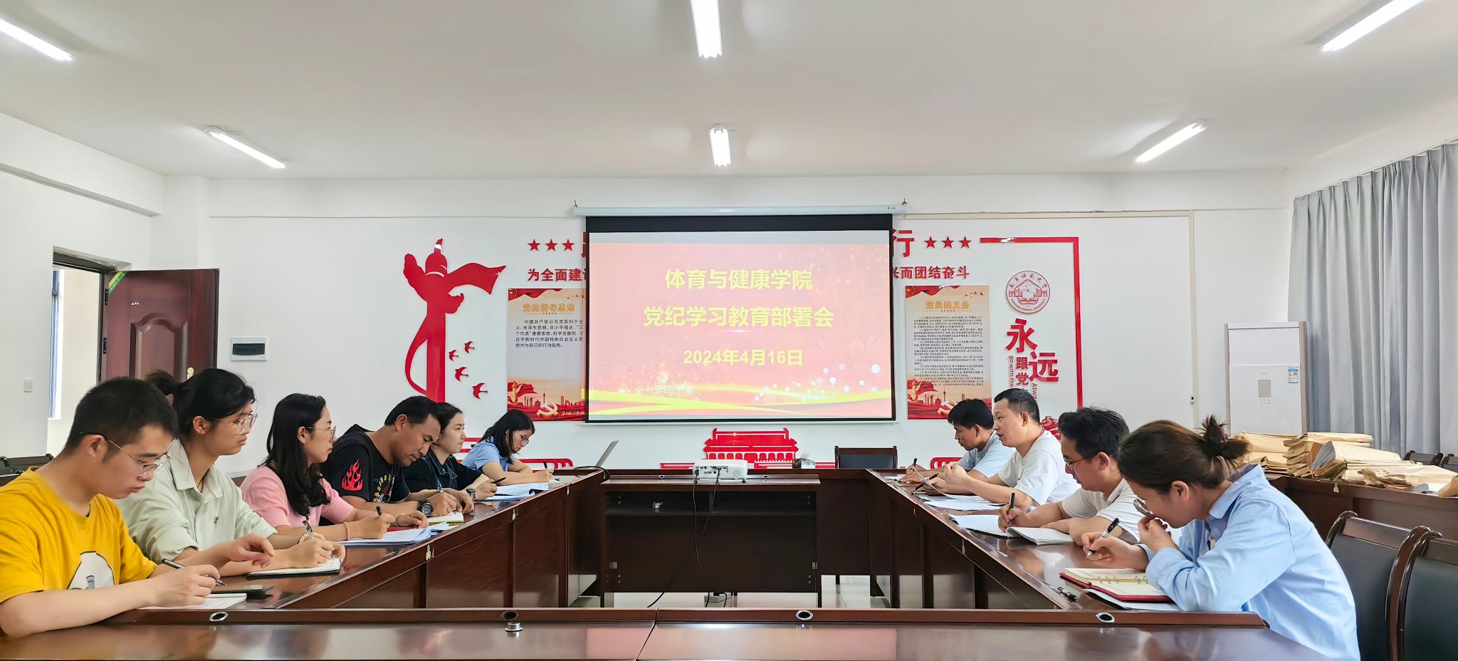 为贯彻习近平总书记关于党纪学习教育的重要讲话精神和重要指示精神,研究部署学院党纪学习教育工作,4月16日下午,体育与健康学院在314会议室召开党委扩大会议研究部署党纪学习教育工作。学院党委领导班子、纪委委员、各党支部书记参加会议。学院党委书记磨有积主持会议并发表讲话。