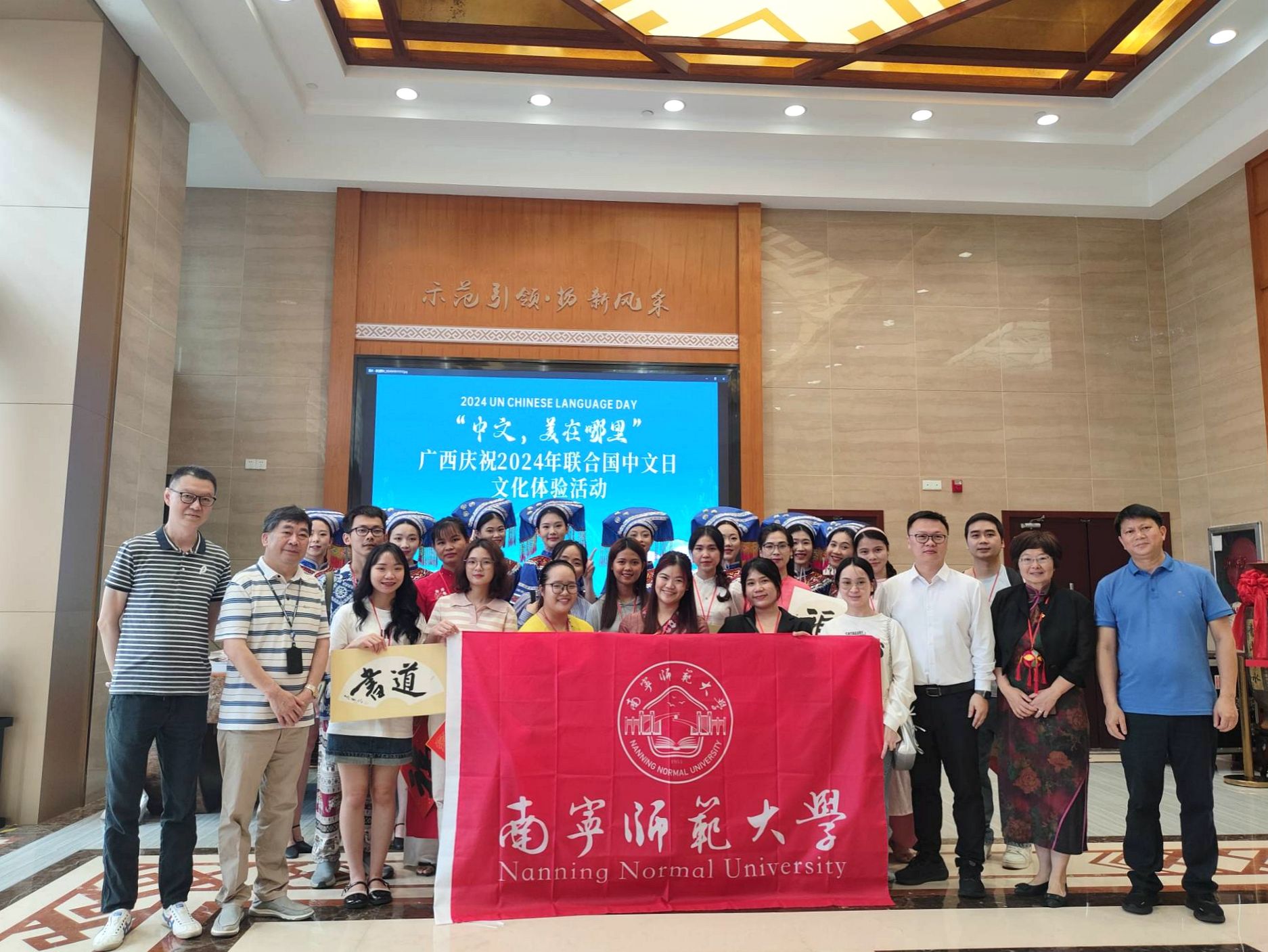 4月19日,国际教育学院的中外师生受邀参加由广西壮族自治区文化和旅游厅主办的广西庆祝2024年联合国中文日文化体验活动。本次活动在广西群众艺术馆隆重举行,以“中文,美在哪里”为主题,旨在通过丰富多彩的文化交流活动,展示汉字之美,体验中华优秀传统文化的魅力。
