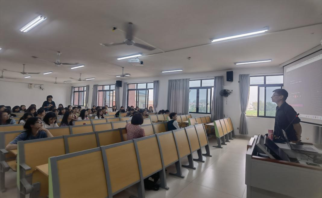 4月15日,外国语学院教师教育教研室在武鸣校区的实验楼教室开展了本学期的首次联合教学活动,教师教育教研室的郑鼎耀老师围绕“AI绘图融入英语评测工作坊”进行了一场精彩纷呈的专题讲座。该讲座旨在探讨人工智能技术自动生成的图片在英语教学特别的英语评测中的应用,及其对教学质量和学生学习效果的影响。本次讲座由教师教育教研室主任林绍丽老师主持,邓芳娇老师、石亿老师以及2021级英语专业班和陶行知实验班的全体同学都参加了本次讲座。
