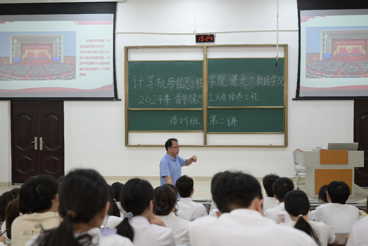 与信息工程学院/曙光大数据学院在地海楼B109教室举行“青年马克思主义者培养工程”培训班(以下简称“青马班”)第二讲。此次培训由学院党委书记余朝文主讲,辅导员宋宏斌老师、团委学生会主席团和我院“青马班”全体学员参加。