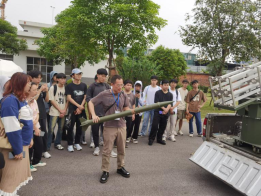 “风以动气,雨以润时。”风可吹动气流,雨可以滋润万物,展现了气象对于生态环境的重要性。同学们来到广西人工影响天气基地,参观指挥中心与陈列室以及人影科普园,详细了解到高炮、火箭车等在增雨、增雪、防雹等业务中的功能及应用案例,以及人工影响天气的基本原理与方法等多样内容。在基地老师的指导下,同学们亲手体验人工增雨作业装备的规范化操作流程,深入感受到一线业务人员的严谨和辛勤。