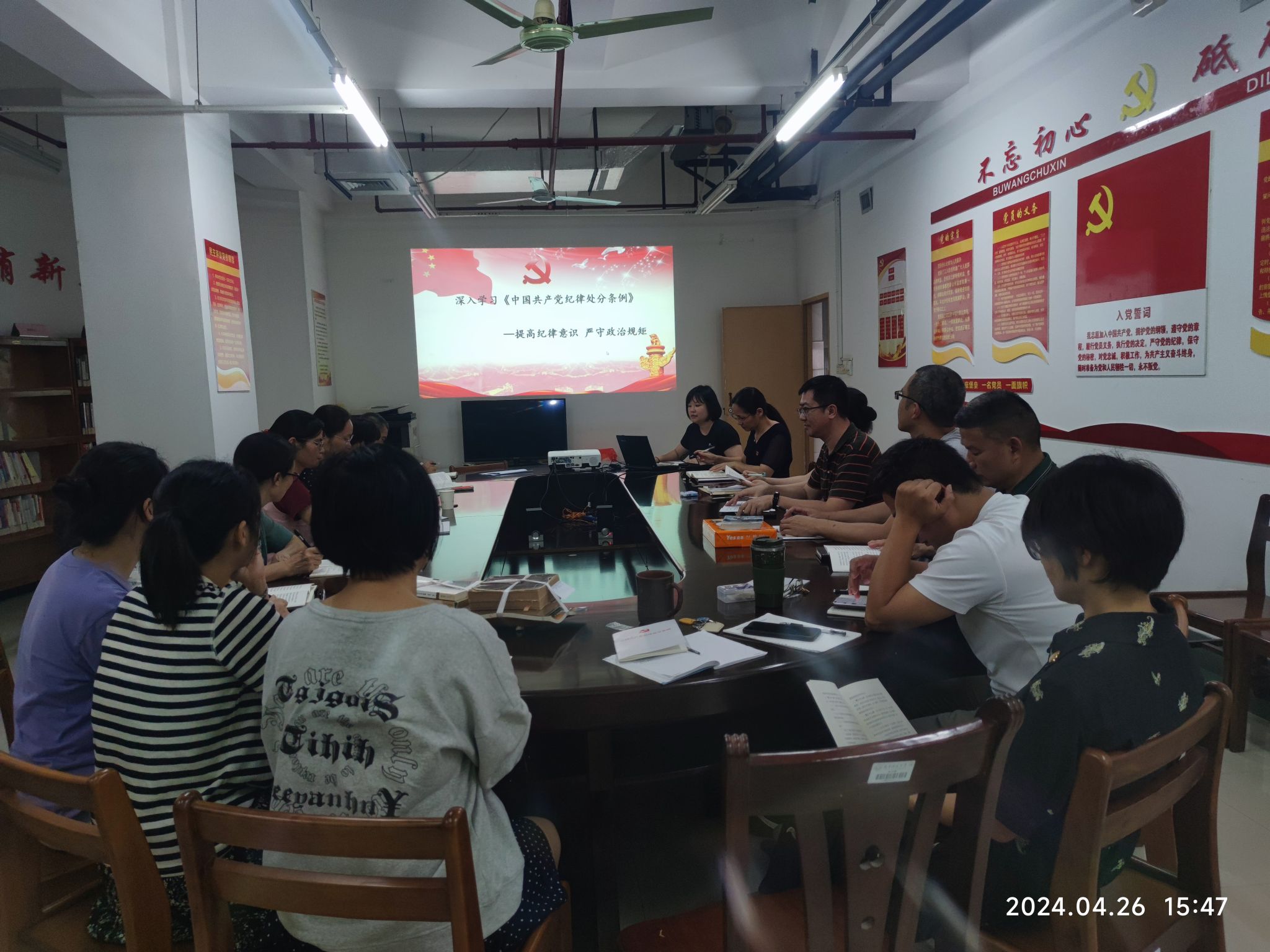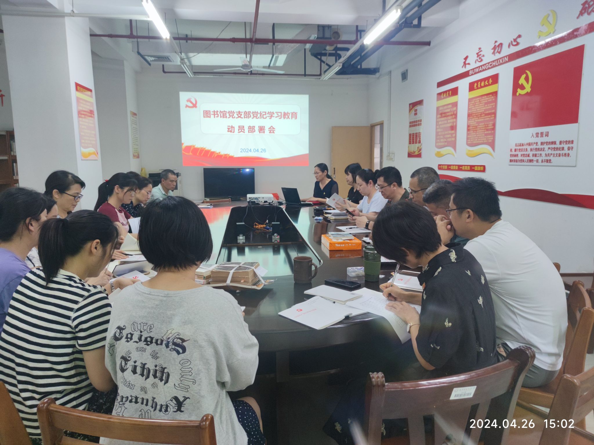 4月26日下午,图书馆党支部在明秀馆11楼党员活动室召开党纪学习教育启动部署会。全体党员及发展对象参加了会议。会议由党支部书记叶佩珍同志主持。