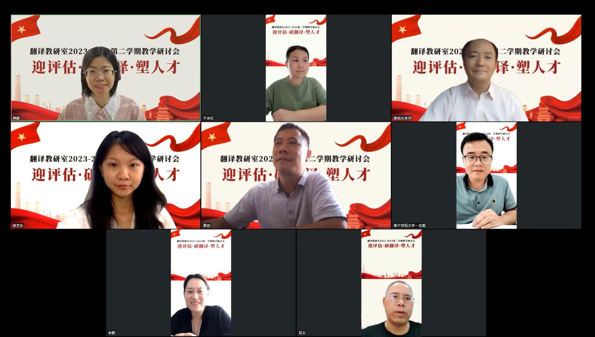 4月26日下午,外国语学院翻译教研室全体成员围绕迎评促建主题,开展了一场深入的线上教学研讨活动。此次活动旨在全面提升翻译专业的教学质量,以积极、奋进的姿态迎接即将到来的评估工作,进一步推动翻译专业的蓬勃发展。