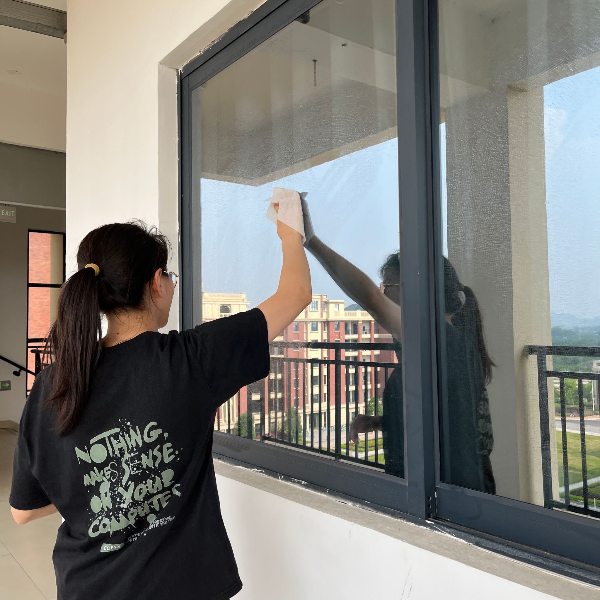 活动开始,支部副书记李亮亮为支部成员合理分配清扫任务,并强调了活动过程中的注意事项,组织支部成员有序开展活动。活动过程中,负责清扫实验楼的成员在教室进行了打扫、擦窗、整理讲台等清扫工作,负责清扫大草坪的成员对草坪的垃圾、落叶进行了清扫。活动尾声,所有成员对清扫现场进行再次检查,确保无遗漏,清理并归还清扫工具,保持现场整洁。