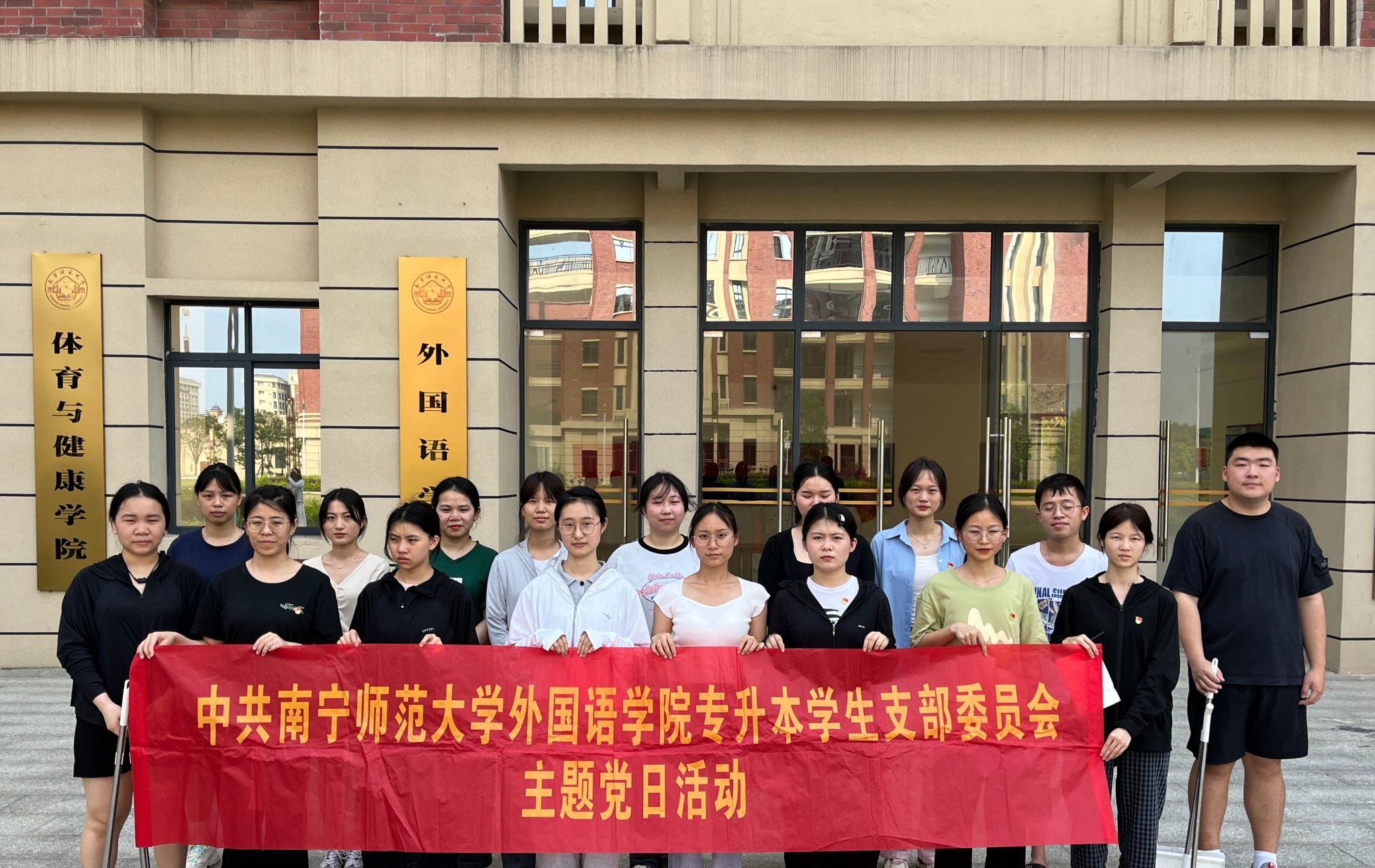 为了进一步弘扬五一劳动精神,彰显党员的使命担当,促进党员用实际行动为校园文明建设贡献一份力量,为全校师生营造一个整洁舒适的学习生活环境。4月27日,外国语学院专升本学生党支部于武鸣校区开展“我为群众办实事——校园卫生清扫”主题党日活动。