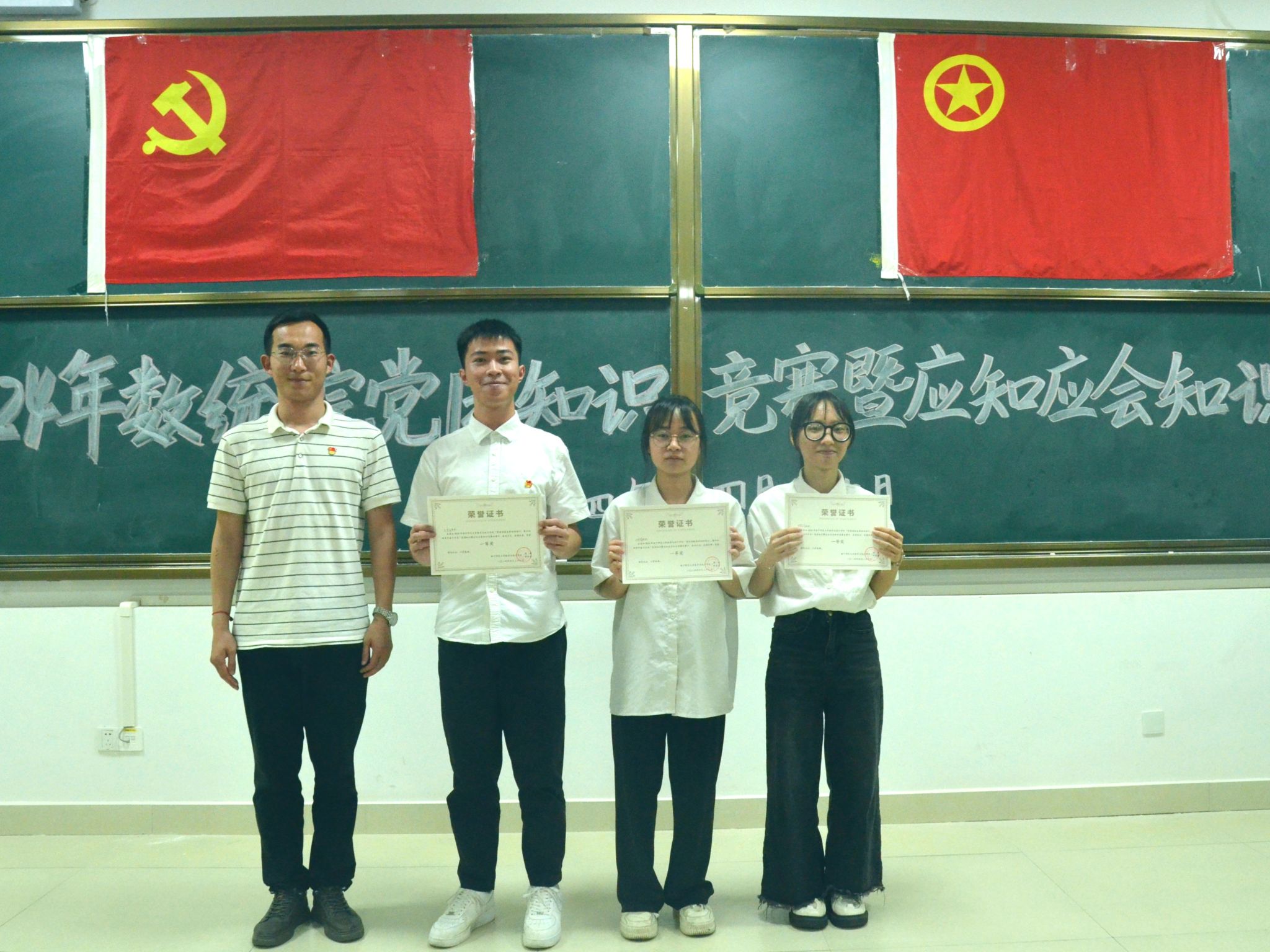 经过激烈的初赛,共有6支队伍脱颖而出进入决赛。比赛在庄严的国歌声中拉开了帷幕,选手们斗志昂扬,信心满满。此次比赛共分为知识竞答、知识判断、识音图辨史、团队抢答以及简答相关理论这五个环节,充分考验了选手们的知识储备、临场应变能力。比赛过程中,选手们思维敏捷、应答如流,彼此展开激烈的角逐。参赛队伍们奋勇争先、全力以赴。经过激烈而紧张的比赛,来自2021级数本1班的王望丞、宣懿芳、叶彩霞同学凭借出色的表现,赢得此次比赛第一名。最后,何振飞老师对此次比赛进行总结,他希望同学们厚植爱党爱国爱校情怀,扎实学习党团知识,认真学习本科教育教学审核评估知识,为学校发展贡献青春力量。