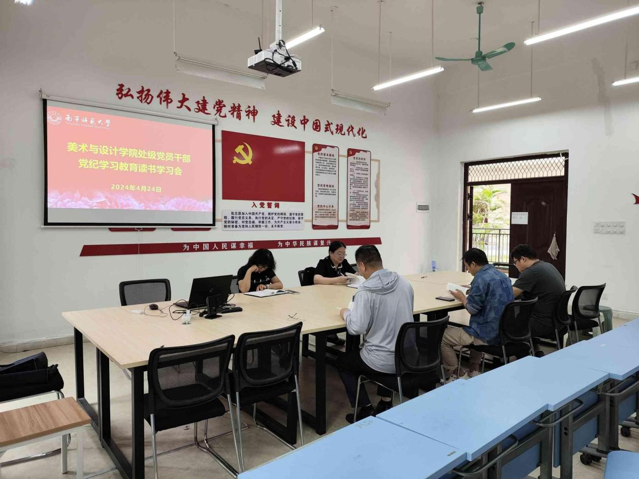 4月23日、24日,美术与设计学院党委处级党员干部在学院123室举办党纪学习教育专题读书班,集体学习习近平总书记关于党纪学习教育的重要指示批示精神、《中国共产党纪律处分条例》、《中国共产党纪律处分条例 》修订前后对照学习材料、学校党委《开展党纪学习教育实施方案党纪学习教育实施方案》等内容。
