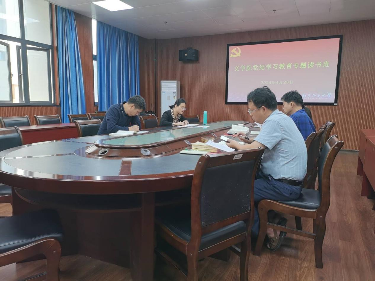 根据上级有关精神及学校党纪学习教育实施方案工作要求,4月23日—24日,文学院举办了党纪学习教育专题读书班,学院处级党员干部参与学习。