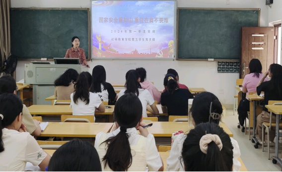 3月26日下午,初等教育学院第五学生党支部在五合校区五综103教室开展国家安全教育党课学习。本次党课以“国家安全重如山,重任在肩不畏难”为主题,由党支部书记李欣主讲。