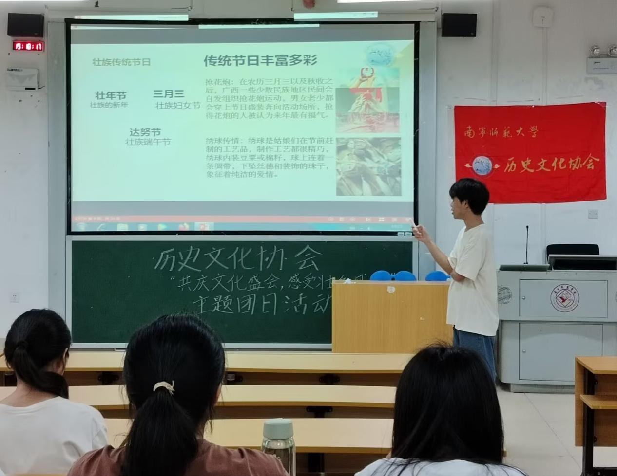 为弘扬民族优秀文化,促进民族团结进步、丰富校园文化活动,南宁师范大学历史文化协会于2024年4月18日在五合校区文楼315教室以及武鸣校区武1-218教室举行“共庆文化盛会,感受壮乡风情”主题团日活动。本次活动面向历史文化协会全体会员。
