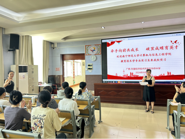 近日,计算机与信息工程学院/曙光大数据学院教育技术学专业2021级学生踏上了校外教育实习的征途。由熊冬春副院长和刘芝老师带队各小组到邕宁高级中学、柳州市壶西实验中学、武鸣华侨中学、来宾八中和梧州一中五所优质学校展开为期9周的校外教育实习活动。