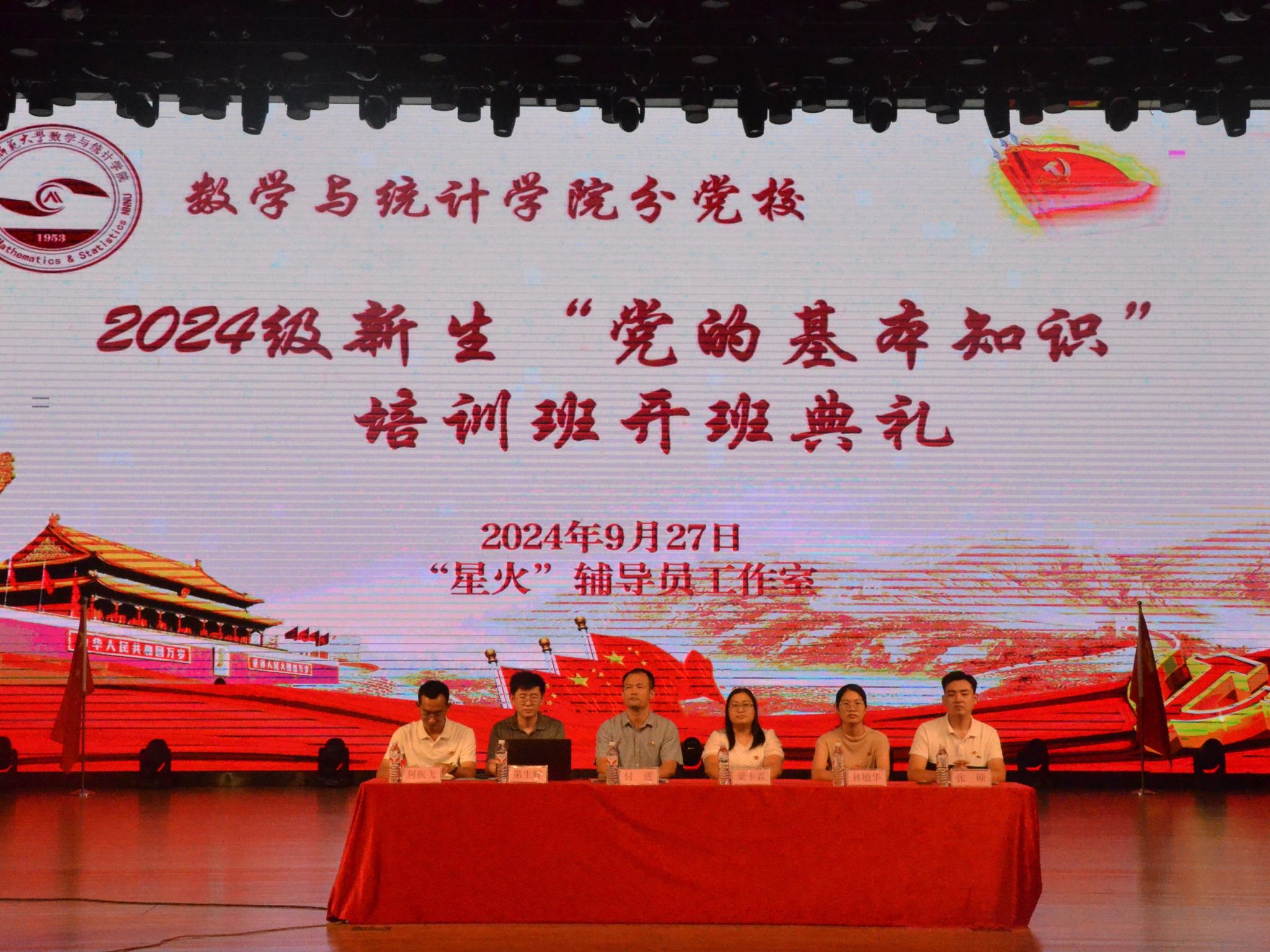 为深入学习贯彻党的二十届三中全会精神,9月27日晚,数学与统计学院分党校在武鸣校区千人演播厅开展2024级新生“党的基本知识”培训班开班典礼,该院党委付进副书记、全体辅导员、本科生第三党支部、本科生第四党支部、全体新生参加此次活动。