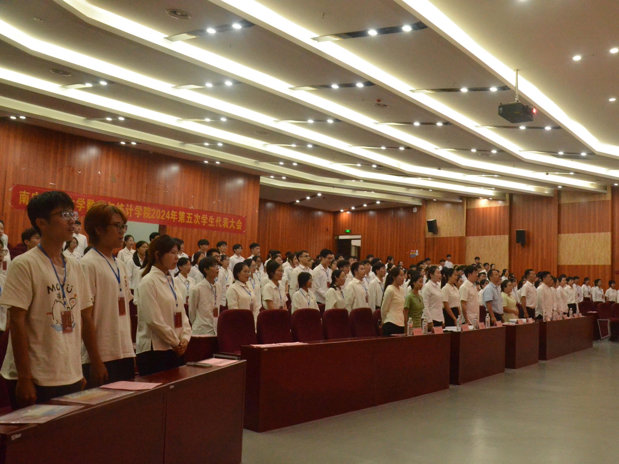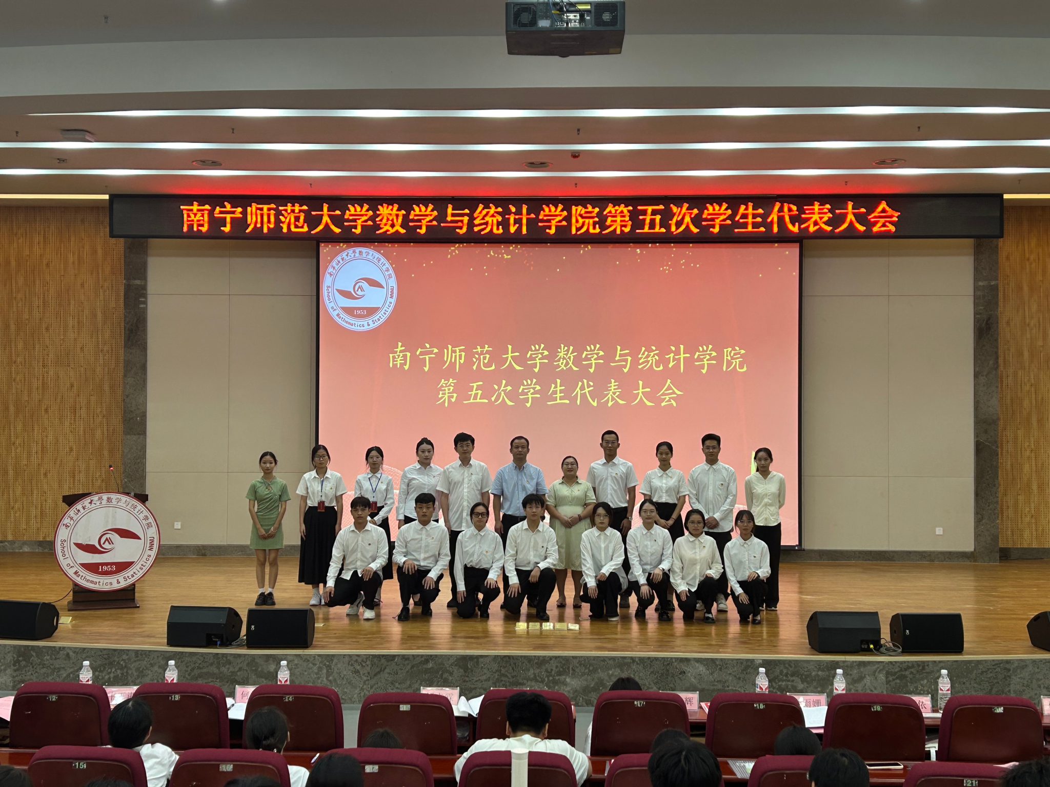 9月28日下午,数学与统计学院第五次学生代表大会在武鸣校区图书馆报告厅顺利召开。学院党委付进副书记、全体辅导员、校学生会代表、二级学院嘉宾代表、团委学生会代表团以及各代表团成员参加本次大会。
