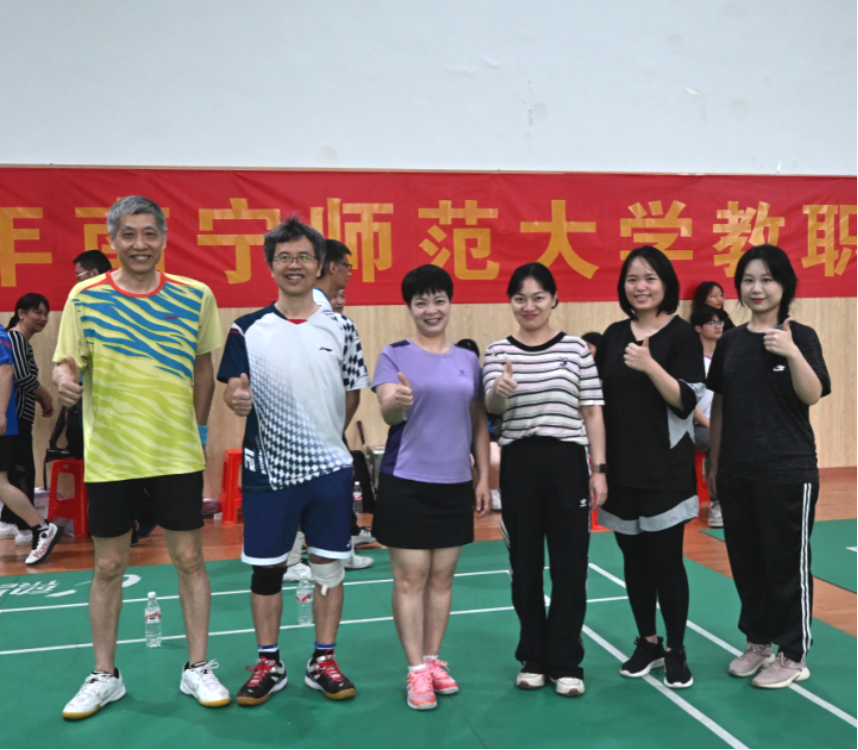近日,2025年南宁师范大学教职工羽毛球比赛在武鸣校区兰园体育馆举行,物理与电子学院教职工积极参加、稳定发挥,学院学子在现场热情高涨、加油助威,在比赛中展现出良好的精神风貌。