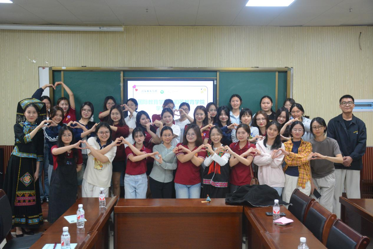 3月28日上午,初等教育学院与国际教育学院在我校五合校区开展中外学生交流座谈。国际交流合作处副处长、国际教育学院副院长陈传忠,初等教育学院团委书记李欣、辅导员李露露、韦文平和70余名中外学生代表参加本次活动。