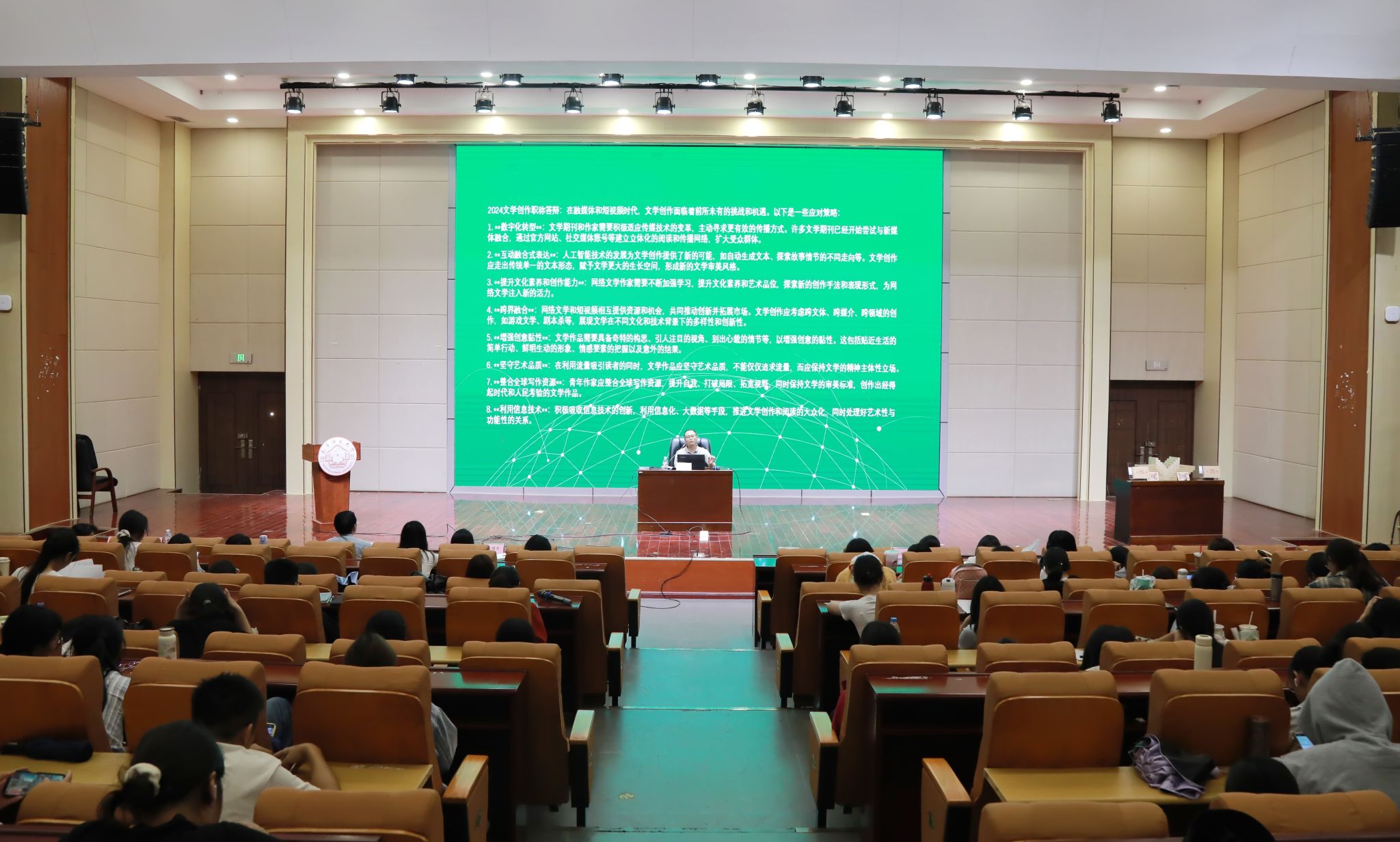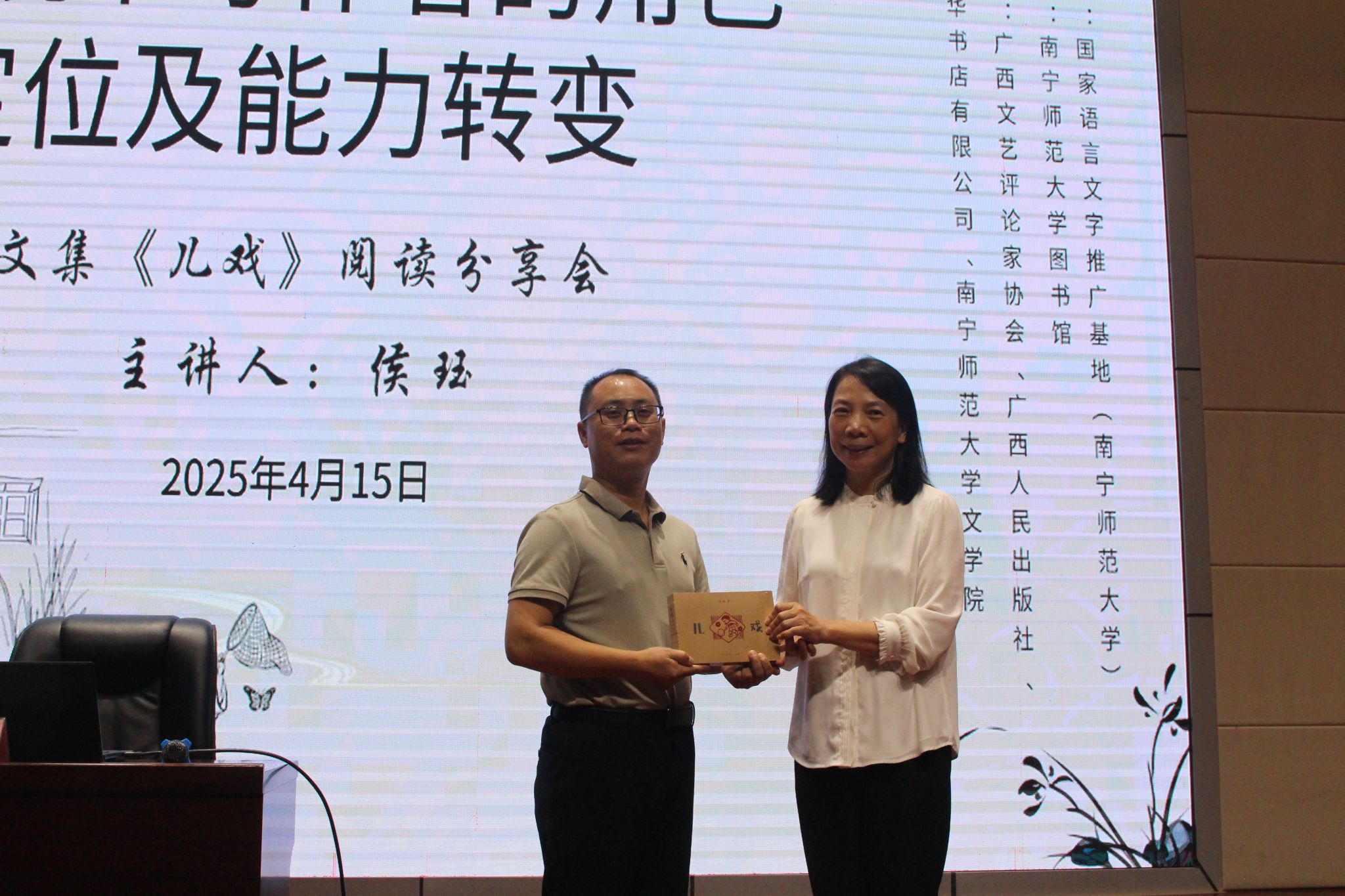 此次活动为我校2025年全民阅读暨“走进好书”读书月“广西作家进校园”系列活动之一,旨在探讨在人工智能迅速发展的背景下,写作者如何重新定位角色并提升自身能力,以适应新时代的写作需求,并以散文集《儿戏》为案例,带领同学们感受中华语言文化之美。