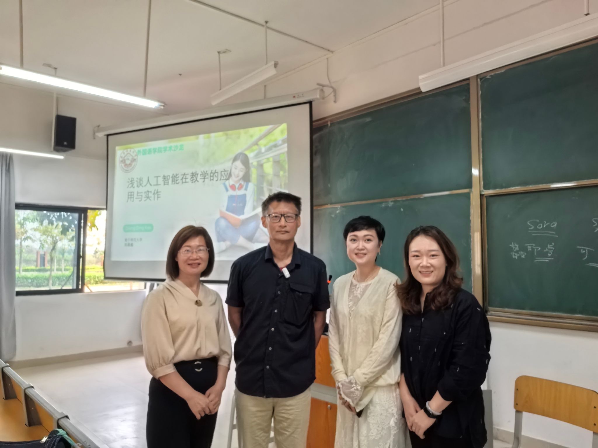 为提升英语师范生信息技术应用能力,4月15日上午,外国语学院教师教育类课程教学团队开展了一年一度的联合教学教研活动,活动主题聚焦人工智能技术在英语教学中的创新应用。本次活动由团队成员郑鼎耀老师担任主讲,团队负责人邓芳娇老师、教师教育教研室主任林绍丽老师及其他团队成员参与交流研讨。本次活动线上线下同步进行,外国语学院2022级英语专业、2022级商务英语专业全体同学以及部分学科教学(英语)专业硕士研究生通过线下和线上方式参与课堂教学,共同探索智慧教育新路径。