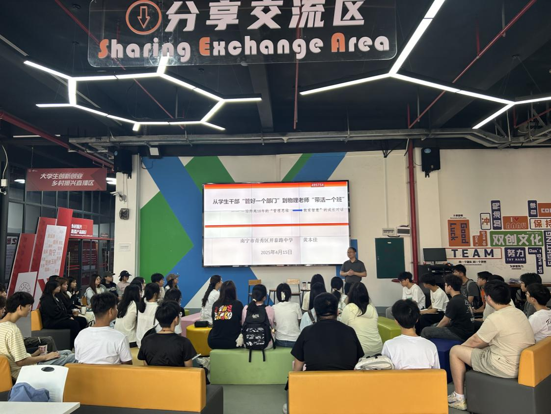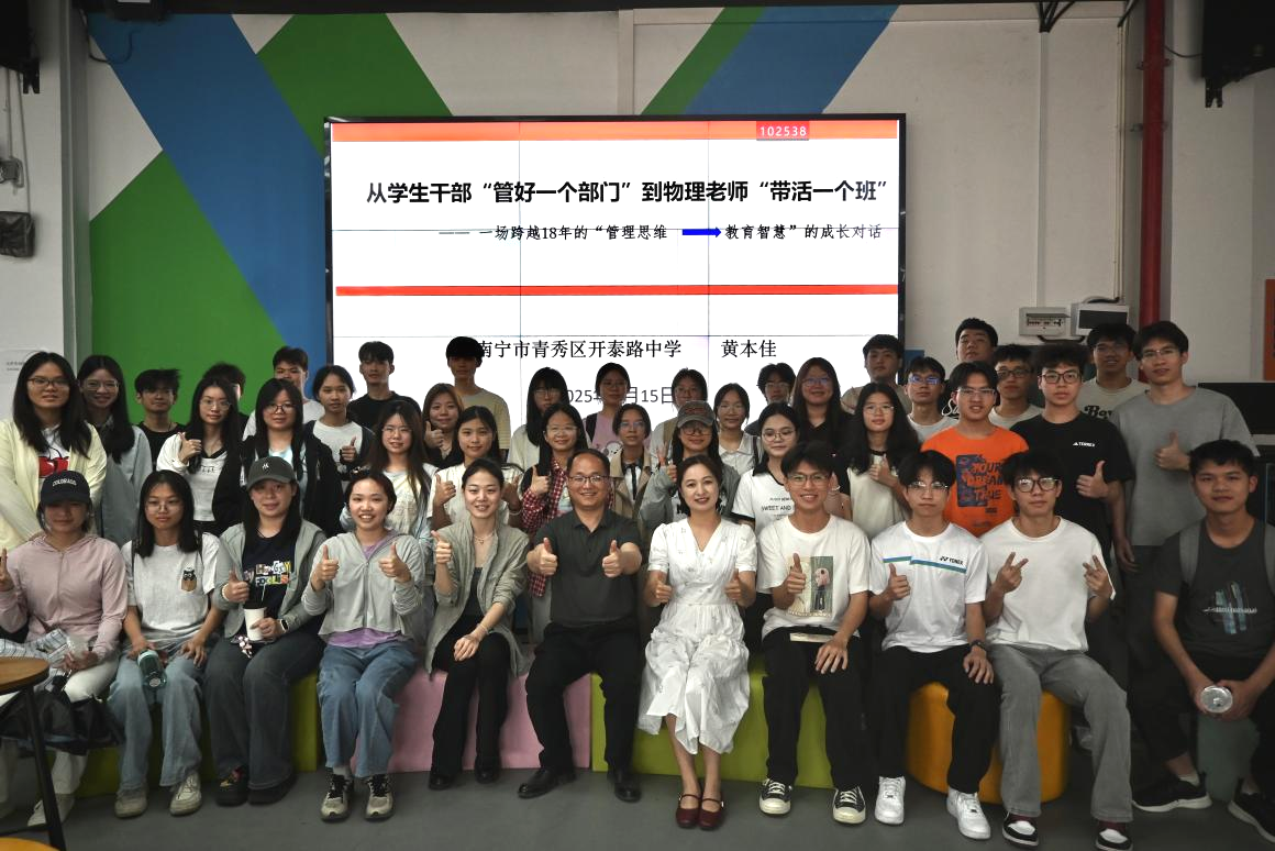 为进一步搭建校友与在校学子之间的交流平台,激励怀揣教育梦想的莘莘学子,物理与电子学院于4月16日上午在南宁师范大学创新创业孵化园成功举办了首期“师生共话 薪火相传”分享交流会。此次活动特别邀请了杰出校友黄本佳、林丽玲(现为青秀区开泰路中学教师)回到母校,与在校师生进行深入交流。