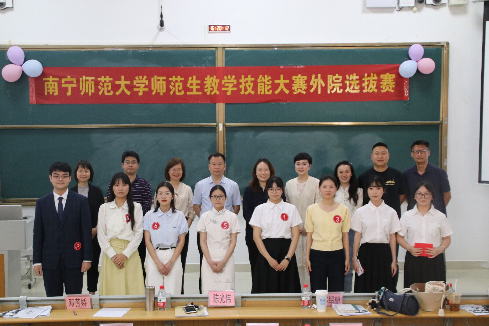 为提高师范生的教学技能,加强师范生的实践应用能力,外国语学院于2024年4月15日在武鸣校区1号教学楼214教室成功举办了“第十六届南宁师范大学师范生教学技能大赛”院级选拔赛决赛。学院院长陈光伟教授、教师教育教研室的林绍丽老师、邓芳娇老师、石亿老师、蔡焱老师、郑鼎耀老师和周俊良老师共同担任了本次比赛的评委。此外,外国语学院党委副书记刘晖晖、学工办蔡梓晴老师以及团副主席团成员们出席了本次比赛。2022级英语专业、商英专业共6名同学经过了初赛、复赛的层层选拔,进入了此次选拔赛决赛的角逐。