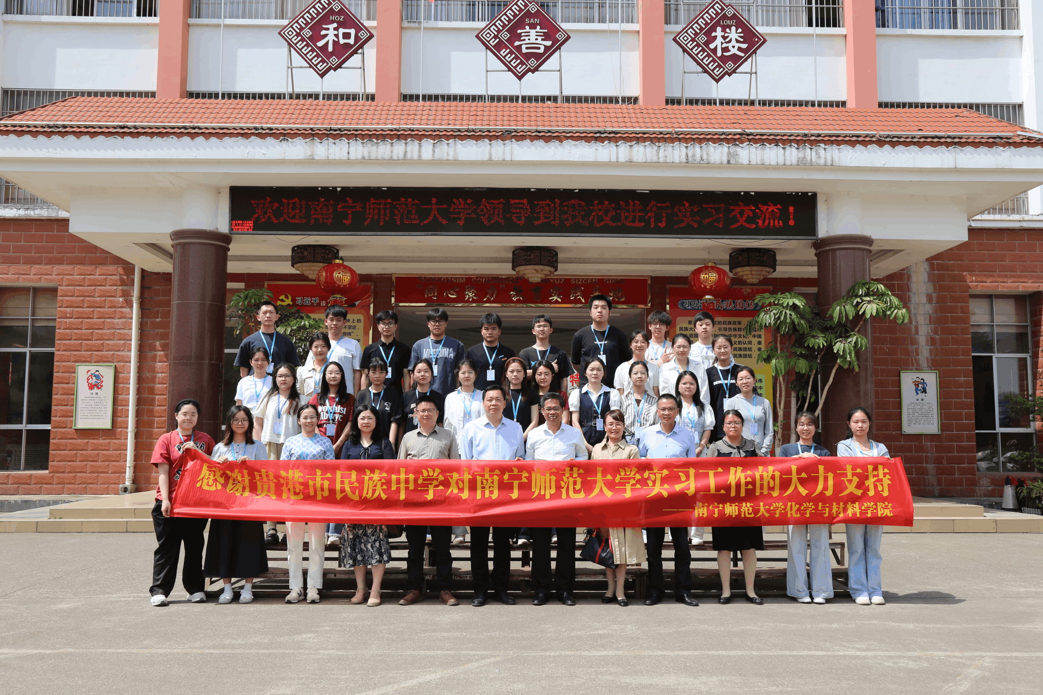 为全面深入了解学生实习动态,及时传递学院关怀,进一步扎实推动实践育人工作,4月16日,化学与材料学院党委书记屈泽明、副院长朱汝葵、党委副书记陈今浩等一行前往贵港市民族中学,走访慰问在该校开展教育实习的学院实习生,并与实习学校领导、指导老师及实习生代表开展了座谈交流。