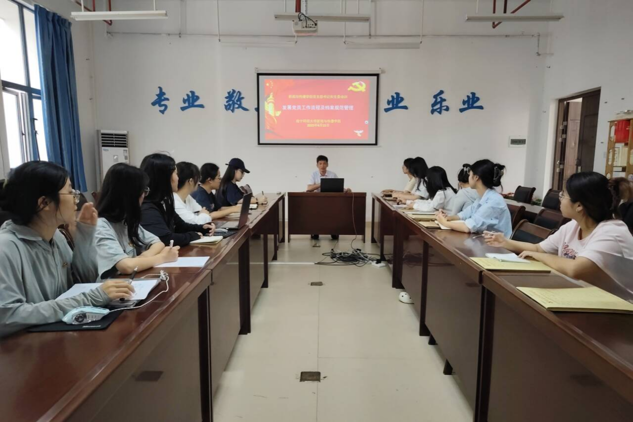 会上,廖林泉老师围绕“高校发展党员工作流程及档案规范管理”展开系统讲解,详细梳理了党员发展全流程的关键环节与注意事项,要求各支部充分结合工作实际,对党员发展各阶段的相关材料进行整理归纳,扎实做好本职工作。他强调,各支部要进一步增强责任意识,务实基层党组织的凝聚力与战斗力。