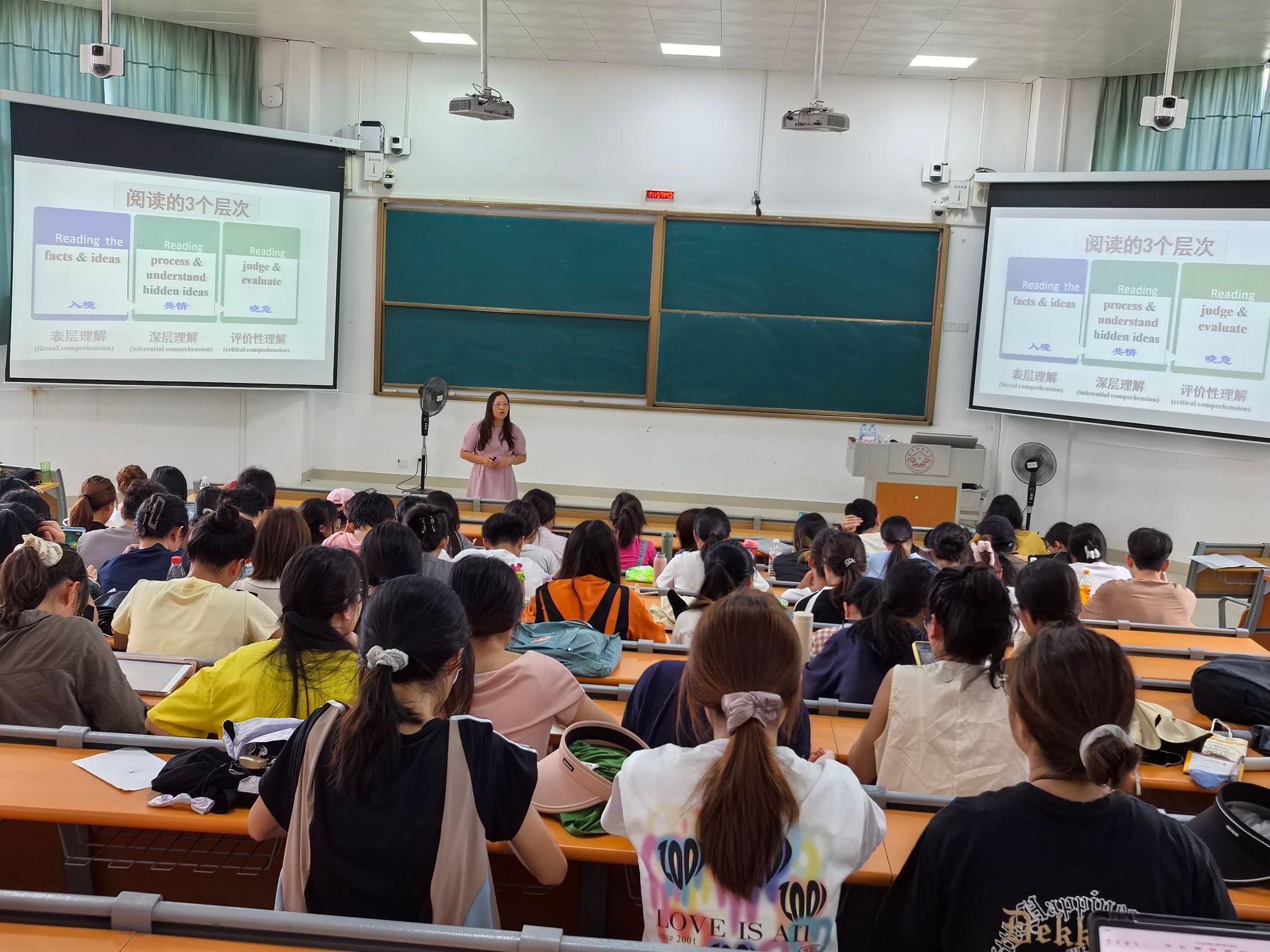 4月29日下午,南宁市第二中学英语学科正高级教师、外国语学院校外硕导陶丽艳老师受邀到外国语学院开展题为《“会读擅写”高中英语读写模式探究》的专题讲座。本次讲座是外国语学院《基础教育英语课程改革研究》课程系列专题讲座之一。教师教育教研室相关老师、外国语学院英语专业2022级全体本科生以及2024级学科教学(英语)专业硕士研究生参加。