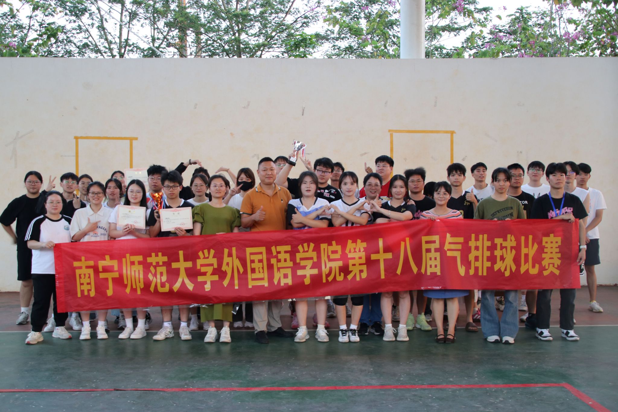 南宁师范大学外国语学院第十八届气排球比赛于5月12日在武鸣校区桂园排球场落下帷幕,学院各班级学生踊跃参赛,为大家带来了一场场精彩绝伦的气排球盛宴。