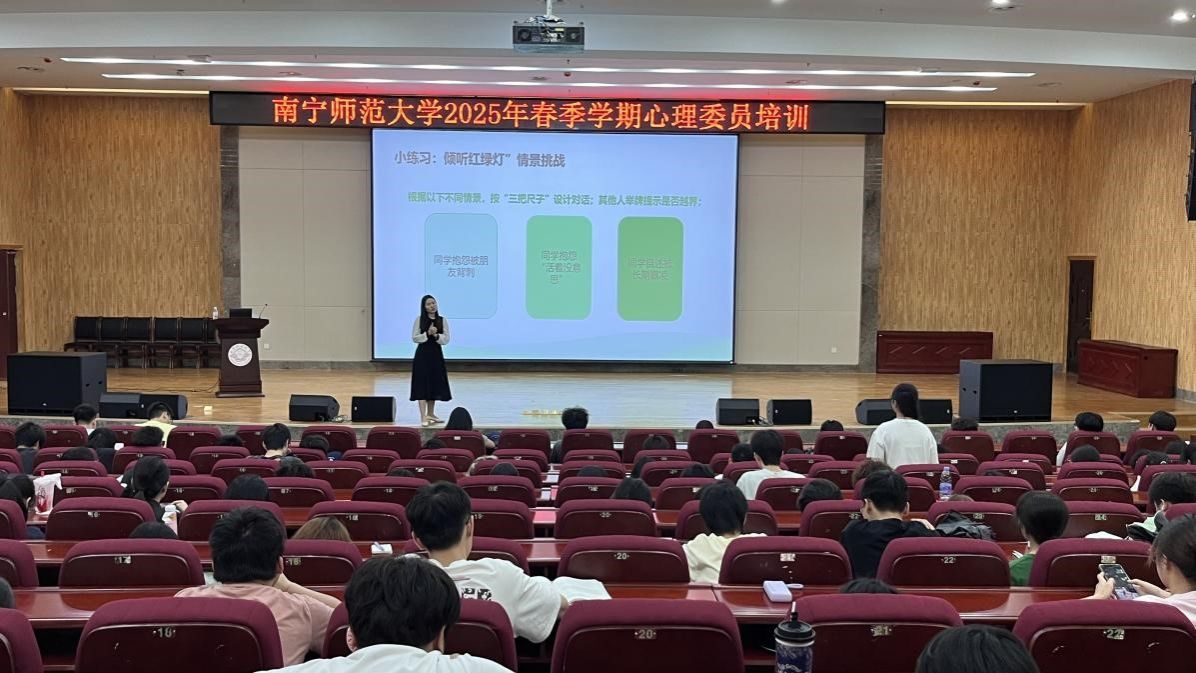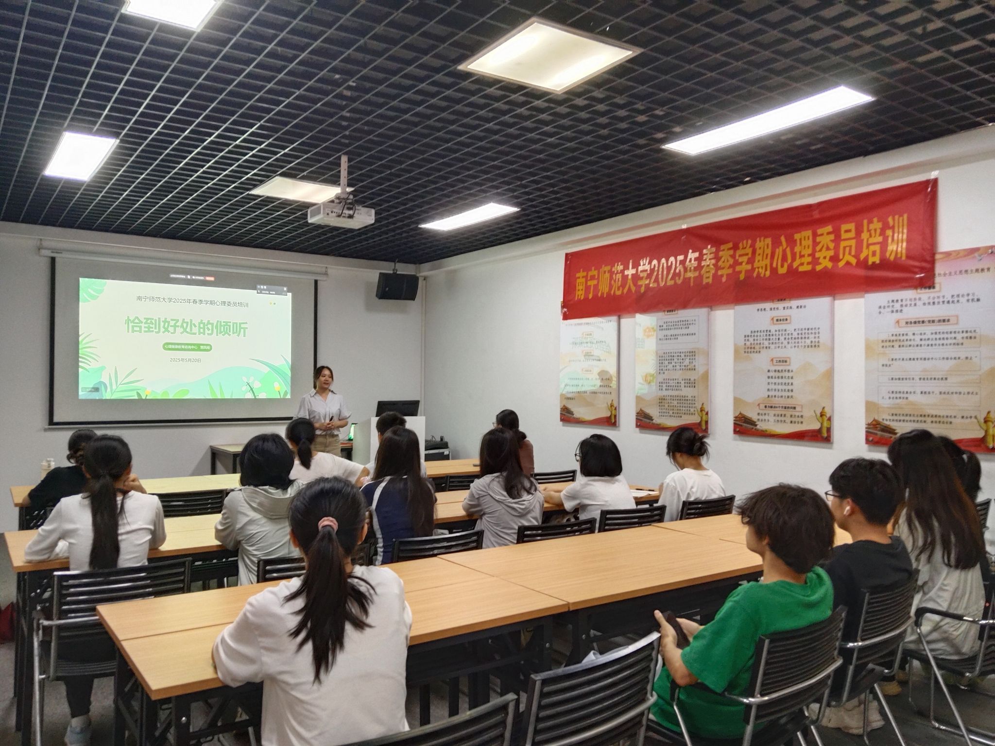 为进一步加强我校心理委员的助人与自助能力,更好地提升班级心理委员的工作水平。我校心理健康教育咨询中心(以下简称“心理中心”)于5月20日分别在明秀、五合、武鸣三个校区开展了2025年春季学期心理委员培训。培训由心理中心专职教师主讲,各班心理委员参加了培训。