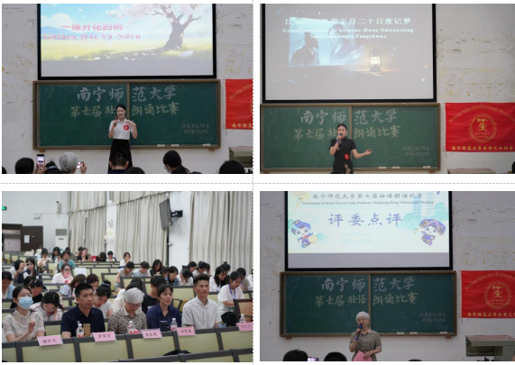 5月20日晚,南宁师范大学第七届壮语朗诵比赛在五合校区五综楼308教室隆重举行。初等教育学院副院长梁秀清,壮汉双语系主任梁春莲、副主任韦宵爱,罗聿言、韦文平、潘红交等老师以及各社团代表出席活动。