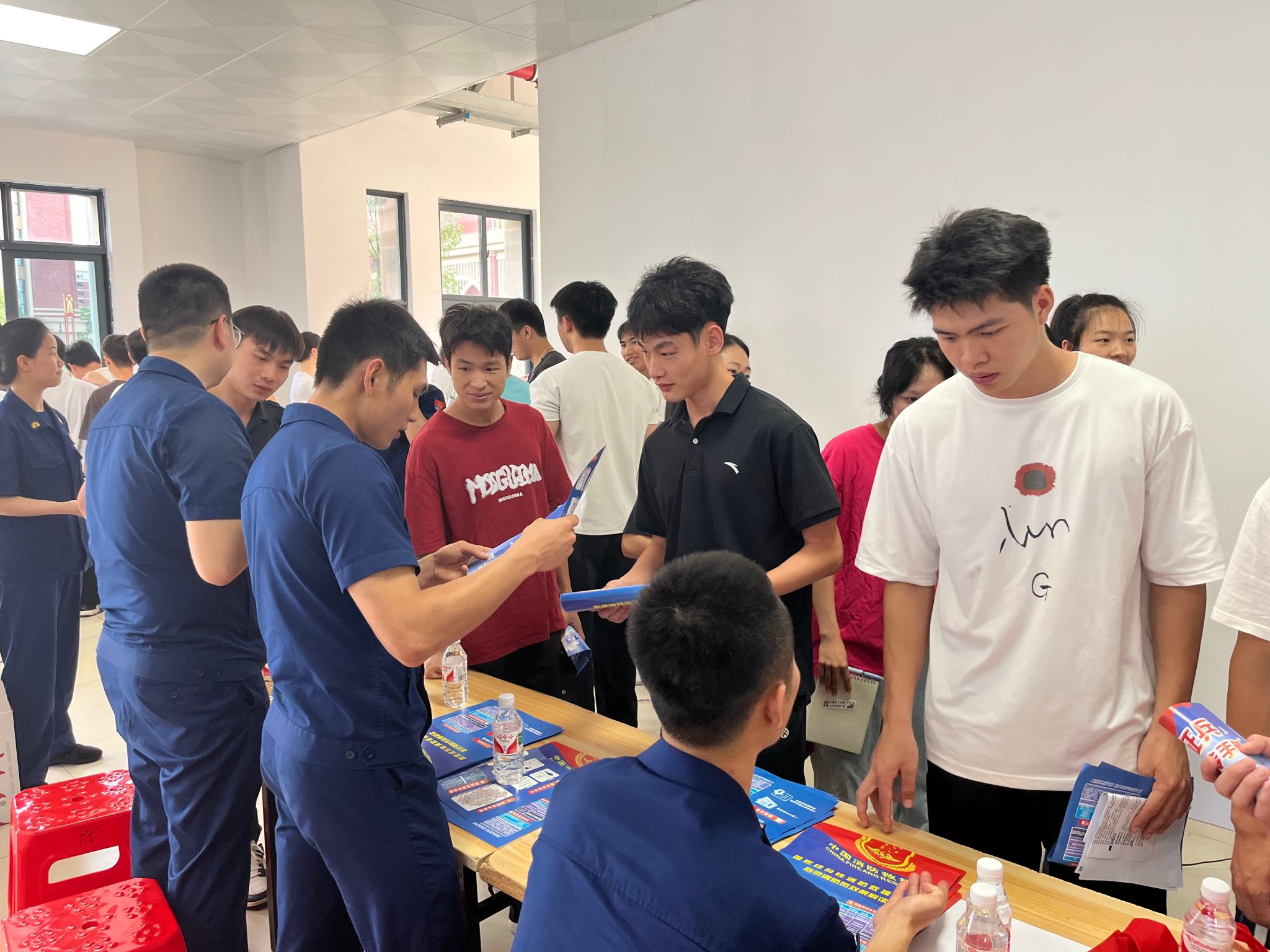 座谈会上,磨有积向南宁市消防救援支队代表的到来表示欢迎并介绍学院2025届毕业生的基本情况、就业意愿及专业能力,用人单位代表详细介绍了本年度招聘计划及岗位要求,对学院学生专业能力给予肯定,期望与学院进一步加强交流合作。双方就当前就业形势、人才需求及合作模式进行了深入探讨。随后,南宁市消防救援支队面向学院学生开展消防员招录(聘)宣讲会,介绍队伍基本情况、工作内容及用人要求。宣讲会结束后,用人单位前往体育与健康学院2025届毕业生专场招聘会现场进行招聘工作。