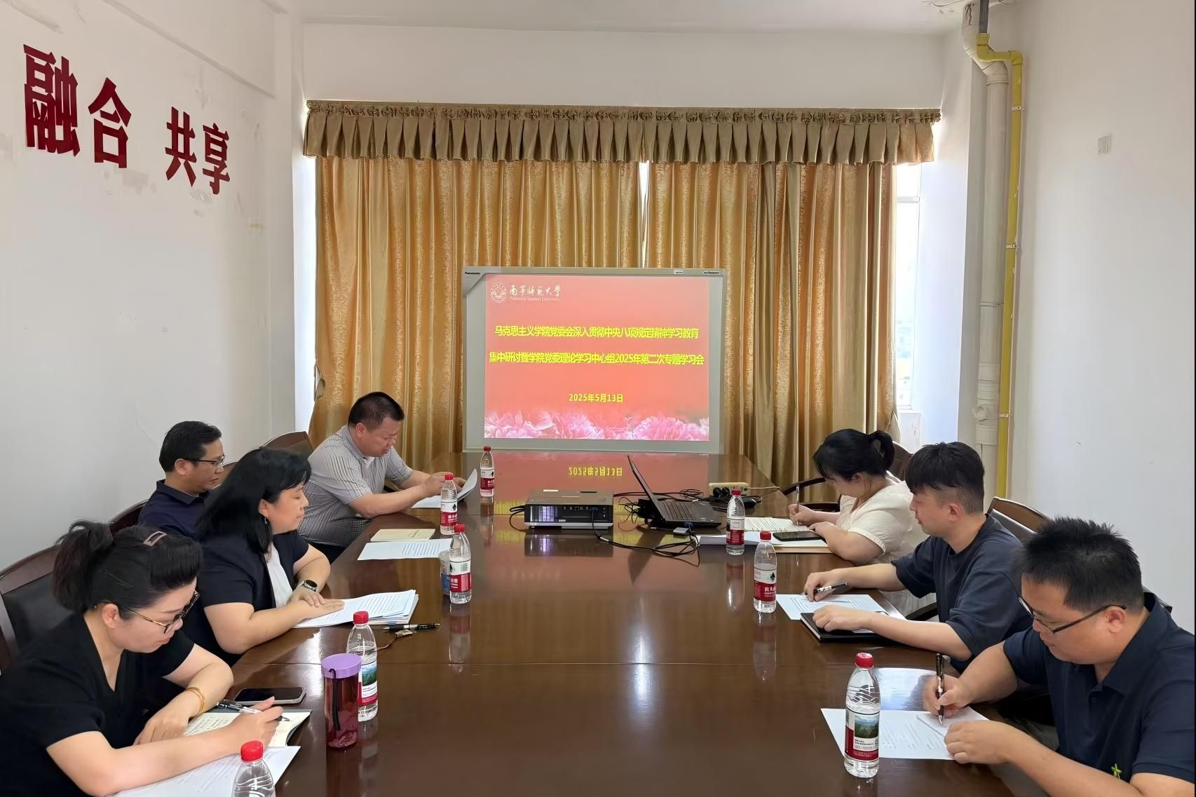 5月13日下午,马克思主义学院党委会深入贯彻中央八项规定精神学习教育集中研讨暨学院党委理论学习中心组2025年第二次专题学习会在明秀校区文星楼1209会议室举行。学院党委书记李玲主持会议。