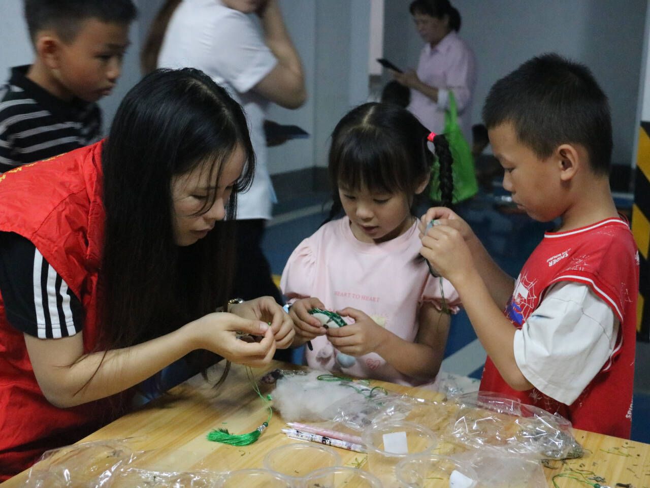 在端午民俗体验环节,志愿者们精心组织,引导亲子家庭共同制作端午香囊。活动现场,家长与孩子们亲密协作,在一针一线的穿梭中,将对传统节日的美好祈愿缝入香囊。与此同时,艾草赠送活动也同步开展,缕缕艾草清香弥漫四周,传递出浓郁的端午传统节日气息。