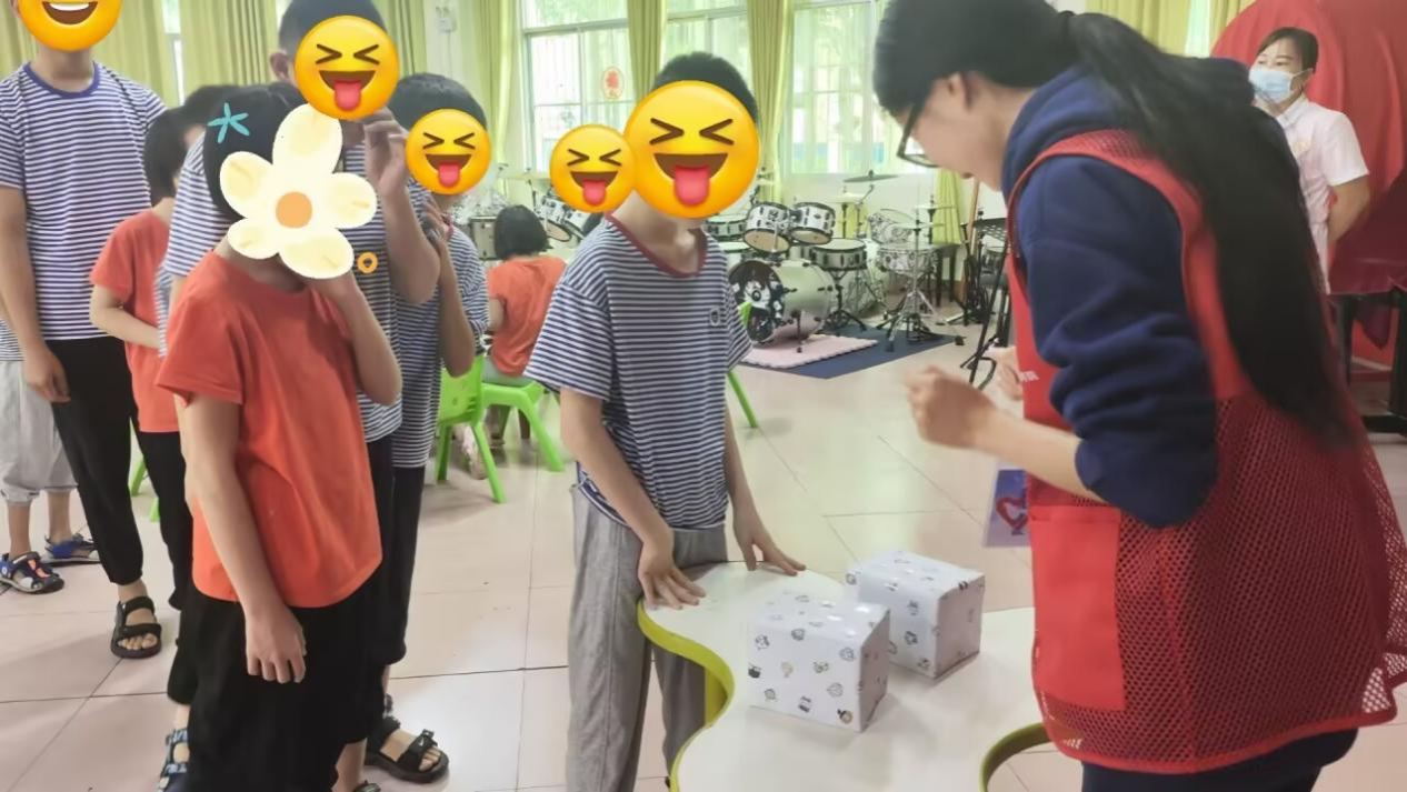 此次活动旨在通过手工、户外游戏等活动,拉近志愿者与孩子们的距离,给予孩子们情感陪伴,帮助他们树立积极乐观的生活态度。活动之中,志愿者们与儿童进行互动小游戏,与儿童一同进行拼图比赛,让他们在完成拼图过程中增强自信心和自我认同感;带领儿童们对帽子进行装饰,让小朋友们体验创作乐趣、收获成就感;最后志愿者们协助小朋友们进行户外接力赛跑,培养他们的团队合作精神与竞争意识。主题活动氛围宽松欢快,游戏环节灵活有趣,在一片欢声笑语中圆满结束。活动最后进行合影留念,记录下这美好又温情的时刻。