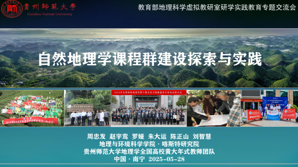 贵州师范大学周忠发教授以“自然地理学课程群建设探索与实践”为主题,从自然地理学课程群建设的理念与创新、探索与实践、成效与推广三个方面,分享了自然地理学课程群建设经验,以《自然地理学》国家一流课程为例,针对课程教学的痛点,提出了“三环、两线、一融合”面向生态建设人才培养的教学创新模式,展现了扎根西部、服务国家战略的教育科研人才一体化、本硕博一体化的人才培养模式。