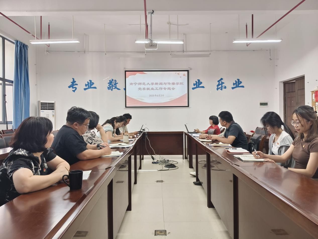 6月3日下午,新闻与传播学院在理综楼304会议室召开党委就业工作专题会。学院党委委员参加会议,各支部书记列席会议。会议由学院党委书记聂卉主持。