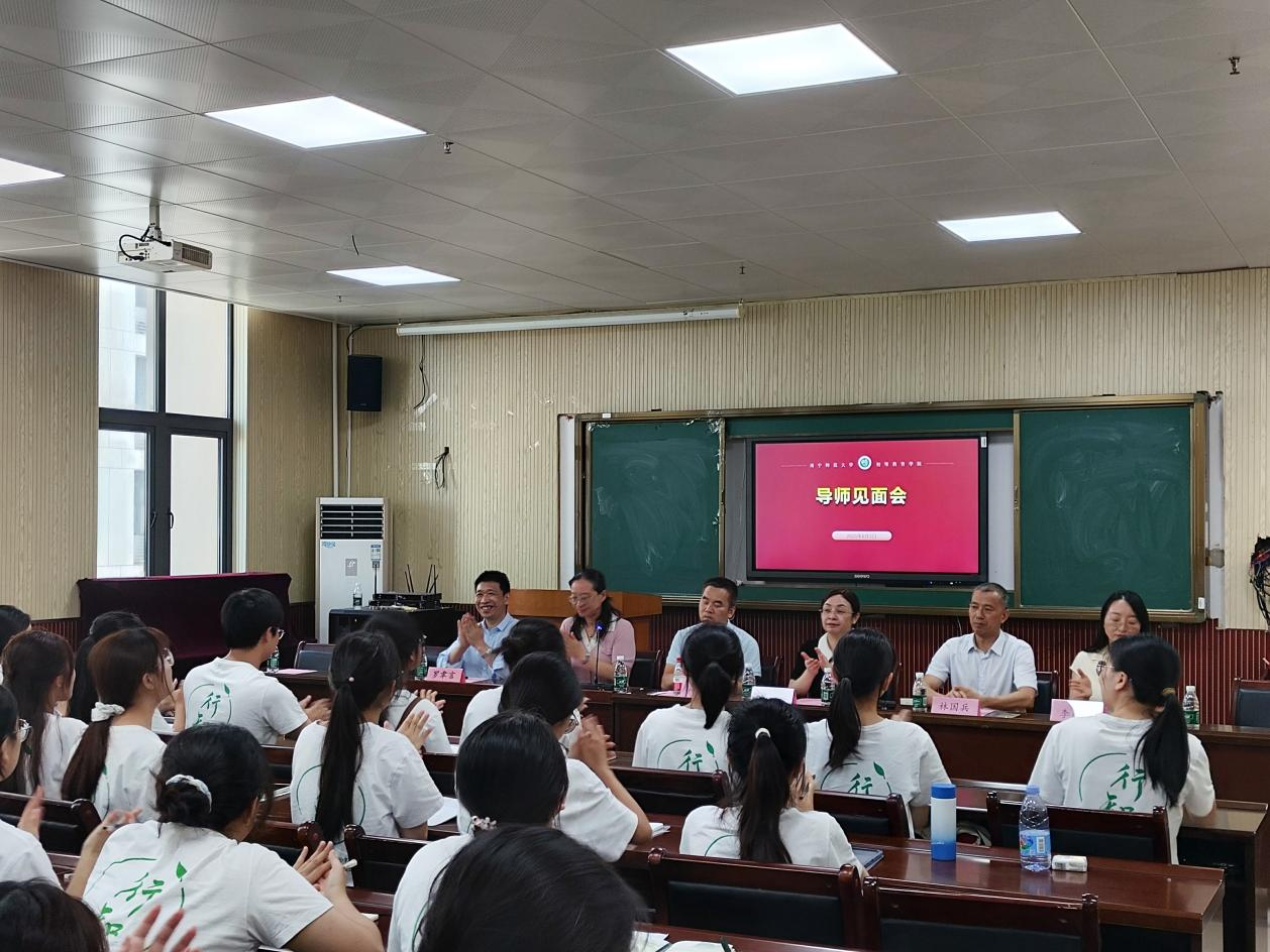 6月3日下午,初等教育学院在五合校区理综楼803举行2023级陶行知实验班开班典礼暨导师见面会。初等教育学院院长梁宇、副院长梁秀清,小教系主任林国兵,陶行知实验班负责人李丹,导师李美旋、罗聿言、李健、黄姣华以及2023级陶行知实验班全体同学参加。活动由李丹老师主持。