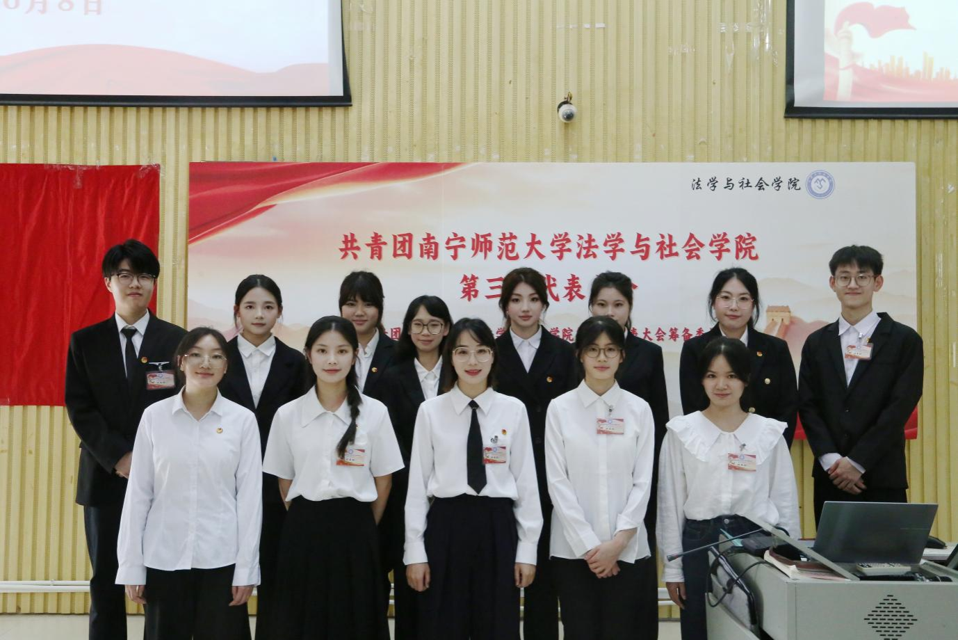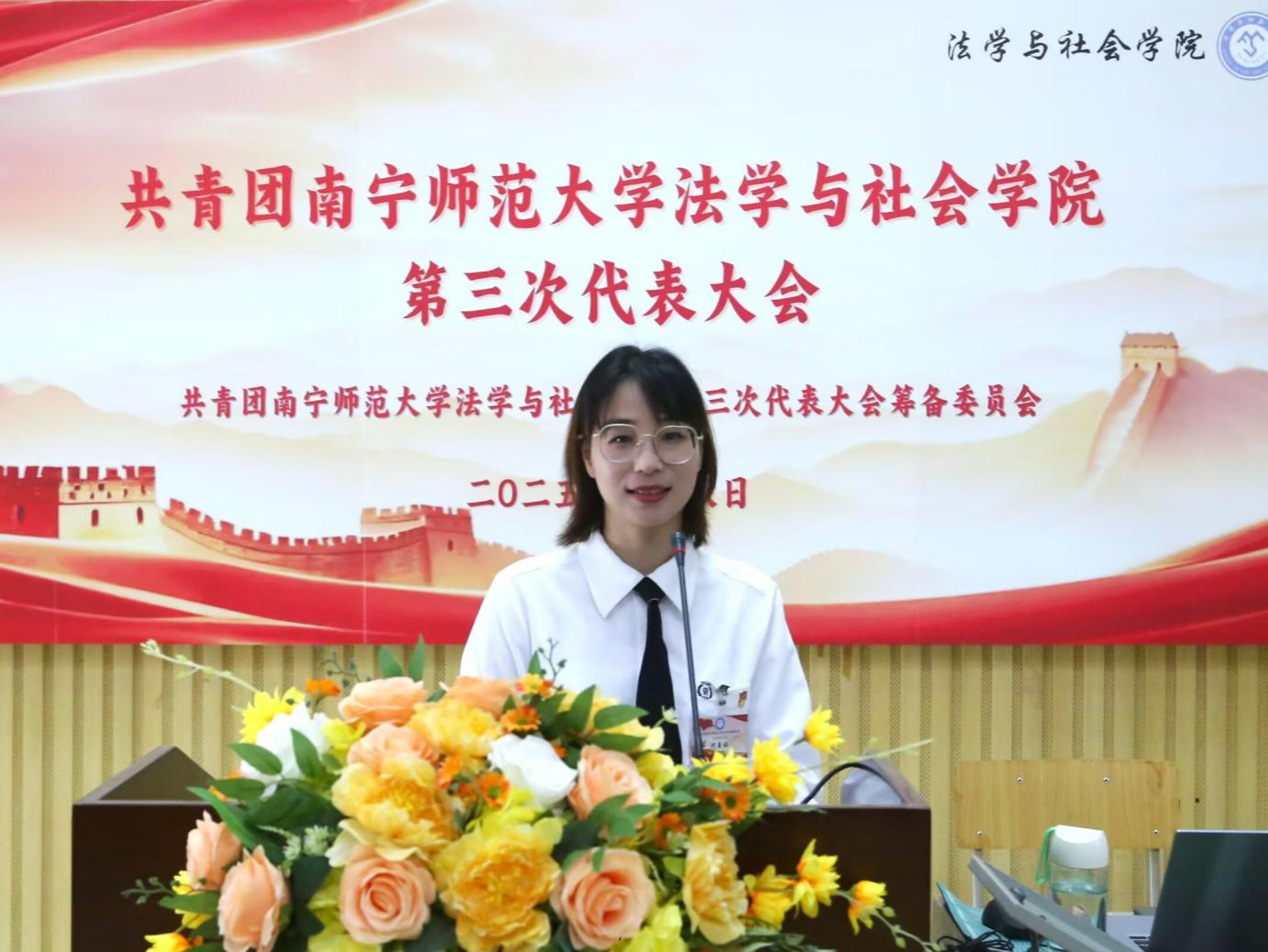 为贯彻落实《中国共产主义青年团章程》、《中国共产主义青年团基层组织选举规则》和《中国共产主义青年团普通高等学校基层组织工作条例》等有关规定,法学与社会学院团委于2025年6月8日上午在五合校区综合楼107教室举行共青团南宁师范大学法学与社会学院第三次代表大会。学校团委书记区丽媛老师、学院党委书记许建老师、学院党委副书记张建梅老师,学院团委书记农云霞老师和学院辅导员邓雅文老师出席了本次大会,参加本次大会的正式代表有195人。