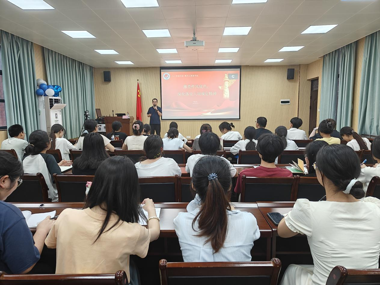 6月13日,学院院长闭应洲面向教师与教育技术研究生党支部,从政治高度阐释中央八项规定作为全面从严治党标志性制度的意义,针对教学管理中听课评课形式化、科研项目管理粗放等问题提出改进路径,并提出将中央八项规定精神与师德师风建设深度融合,打造政治素质过硬、业务能力精湛的高素质教师队伍。