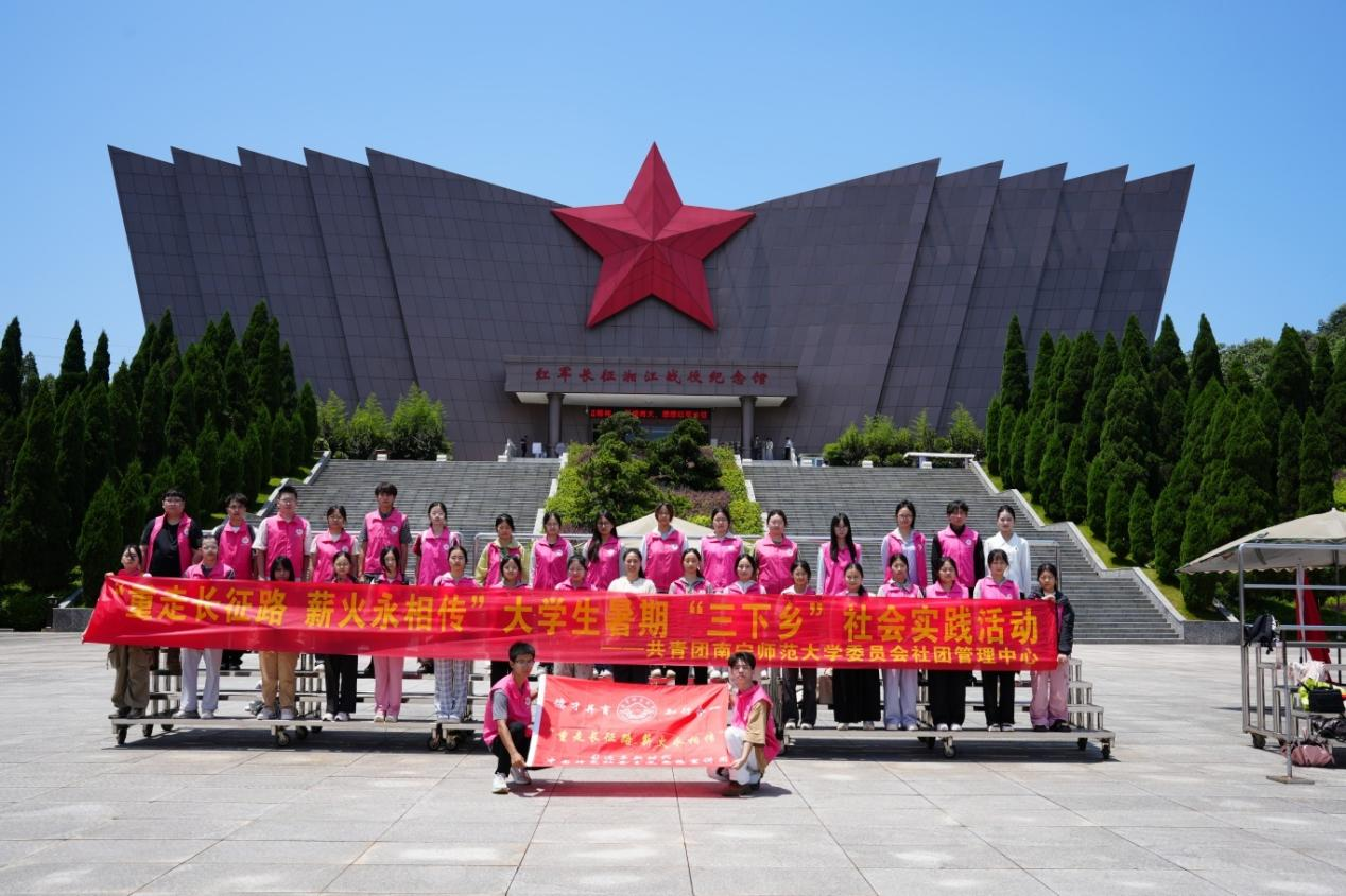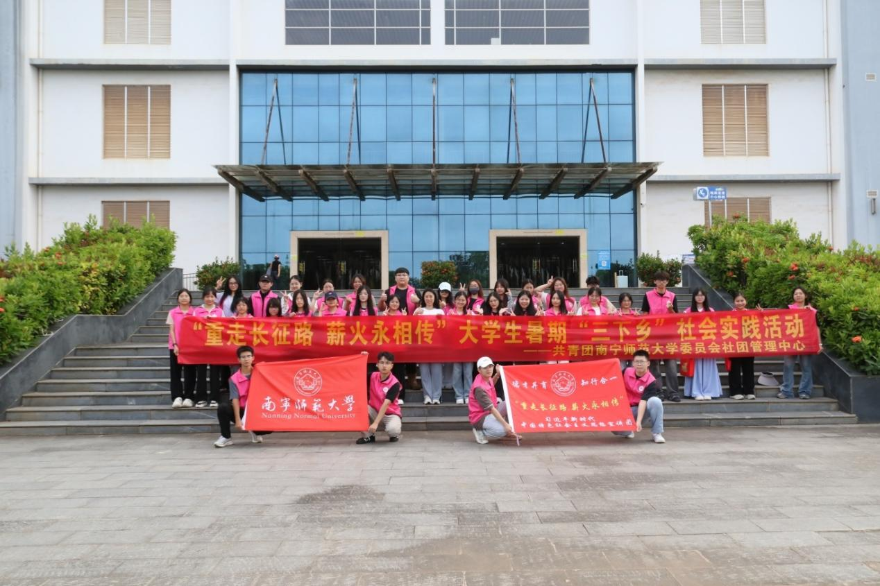 为深入贯彻爱国主义教育,以长征精神为内核,教育振兴为目标,构建“理论调研—实践创新—成果转化”三位一体的实践体系,7月14日,由南宁师范大学学生社团管理中心、各学生社团代表等38名同学组成,校团委王璐老师带队的“重走长征路 薪火永相传”爱国主义教育实践团赴广西桂林市全州、灌阳、兴安三县开展为期七天的暑期“三下乡”社会实践活动。